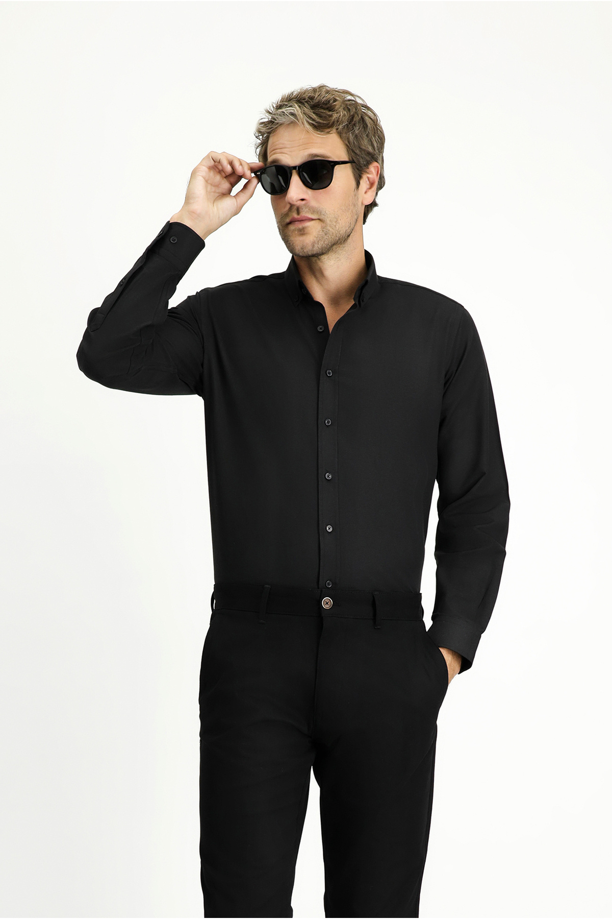 Slim Fit Lacivert Armürlü Düğmeli Yaka Pamuklu Gömlek Slim Fit Lacivert Armürlü Düğmeli Yaka Pamuklu Gömlek 5HC02ORT07265 3XL