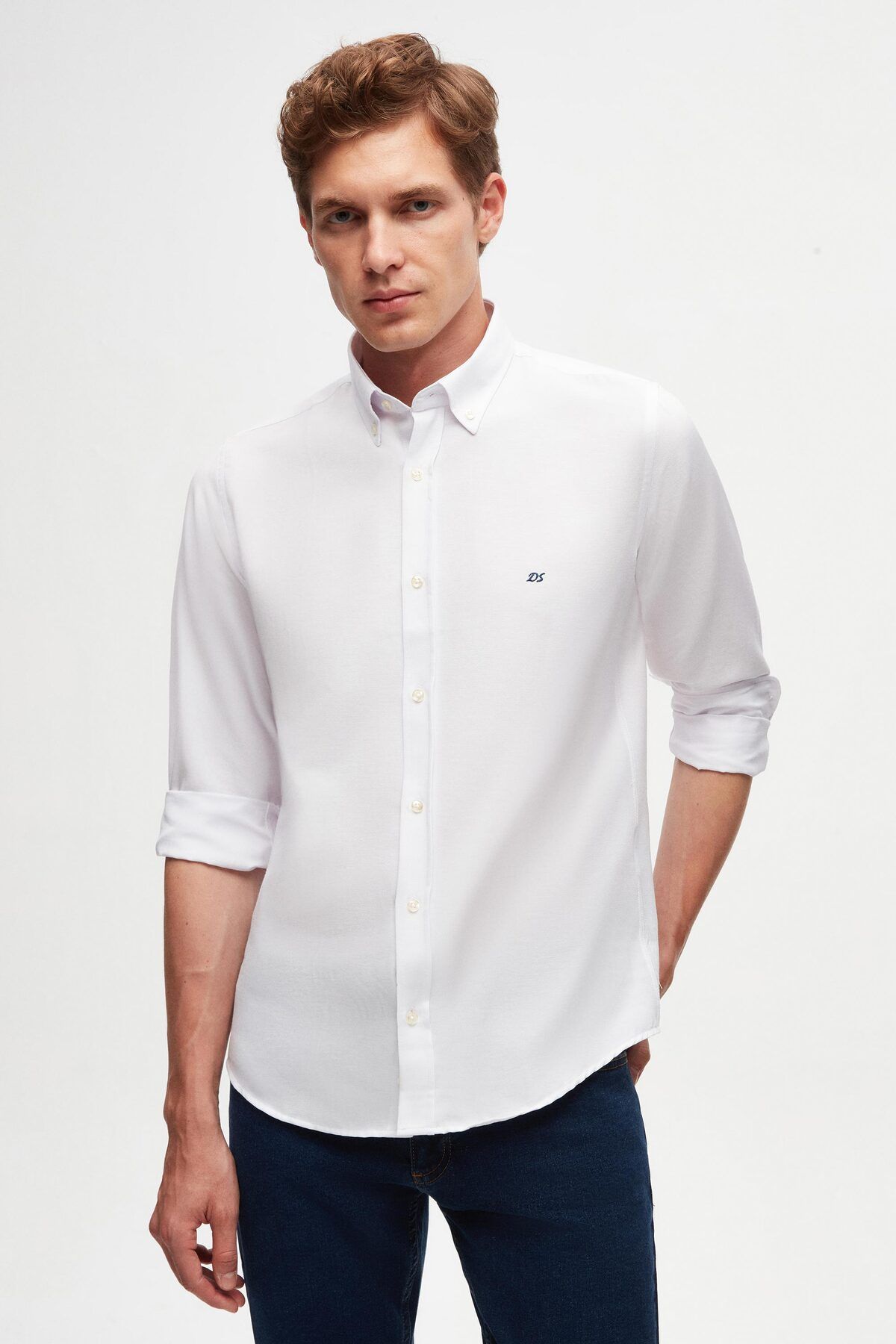 Ds Damat Slim Fit Beyaz Oxford Düğmeli Yaka Kolay Ütülenebilir Nakış Detaylı Pamuklu Gömlek Ds Damat Slim Fit Beyaz Oxford Düğmeli Yaka Kolay Ütülenebilir Nakış Detaylı Pamuklu Gömlek 4HC02ORT03265 4XL