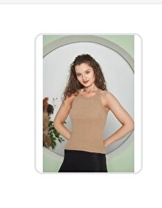 Kadın Fitilli T-shirt Halter Yaka Örme Atlet Likralı Kadın Fitilli T-shirt Halter Yaka Örme Atlet Likralı Dry01023 L