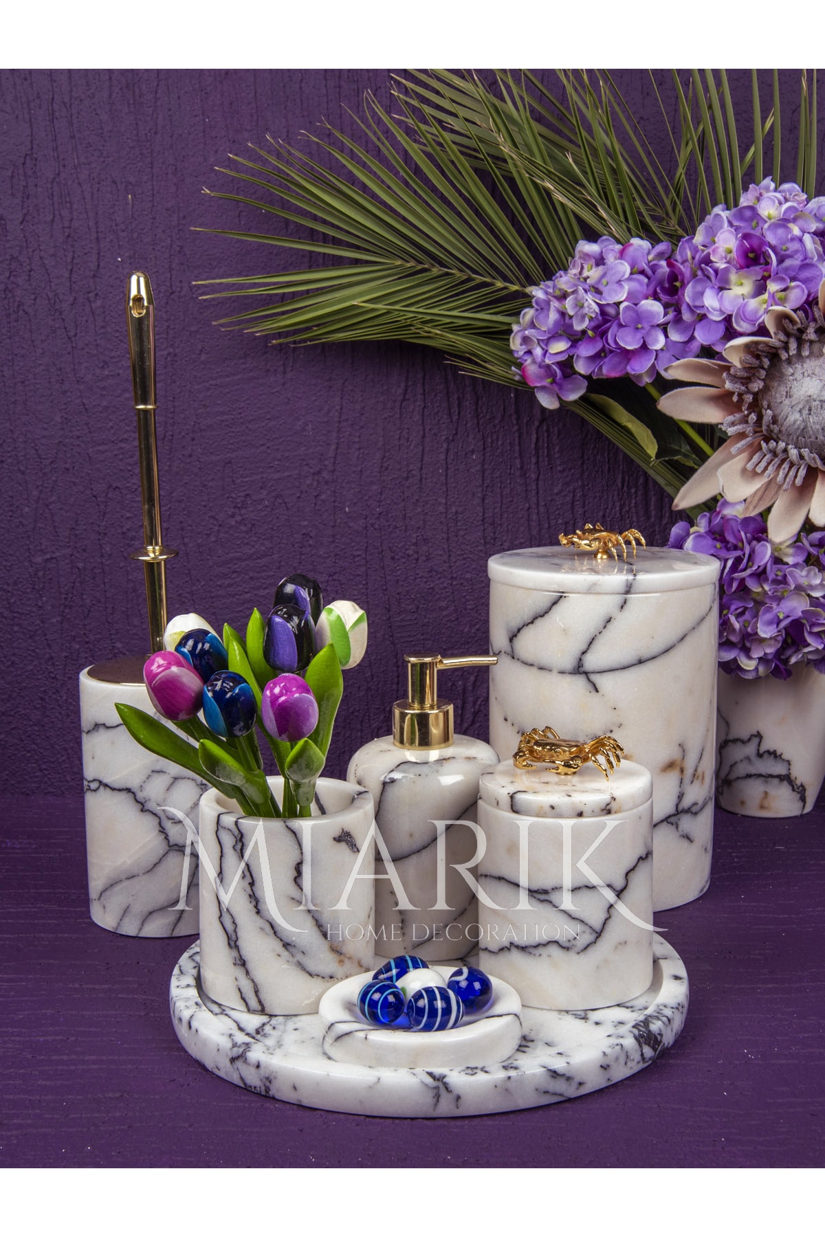 Dekoratif Leylak Mermer Aksesuar Detaylı 7 Li Banyo Seti Takımı Dekoratif Leylak Mermer Aksesuar Detaylı 7 Li Banyo Seti Takımı LEYLAK7DUZ تک سایز