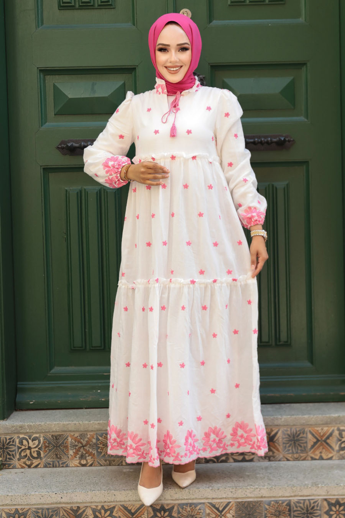 Çiçek Desenli Pembe Tesettür Elbise 1381P Çiçek Desenli Pembe Tesettür Elbise 1381P AF-1381 46