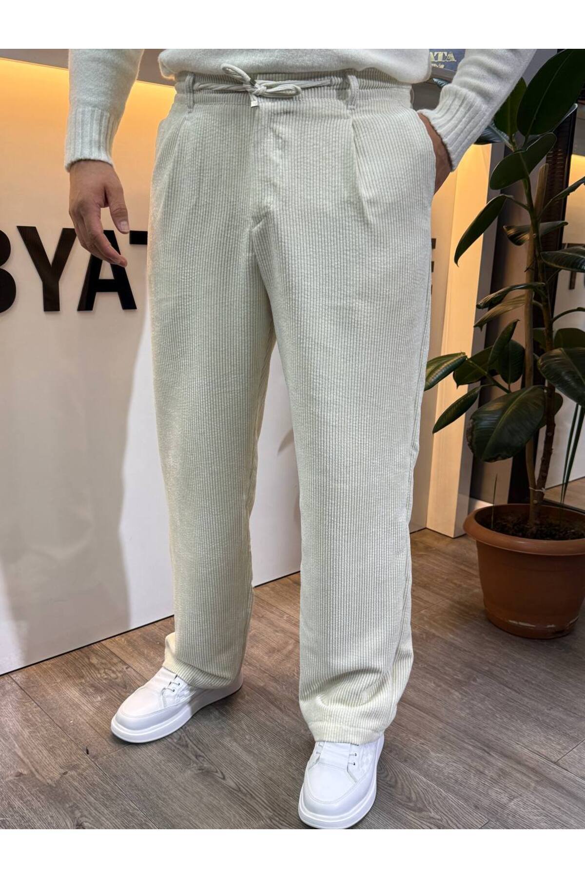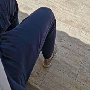 Erkek Lacivert Musli Bağcıklı Keten Pantolon Erkek Lacivert Musli Bağcıklı Keten Pantolon J19MSL01 34