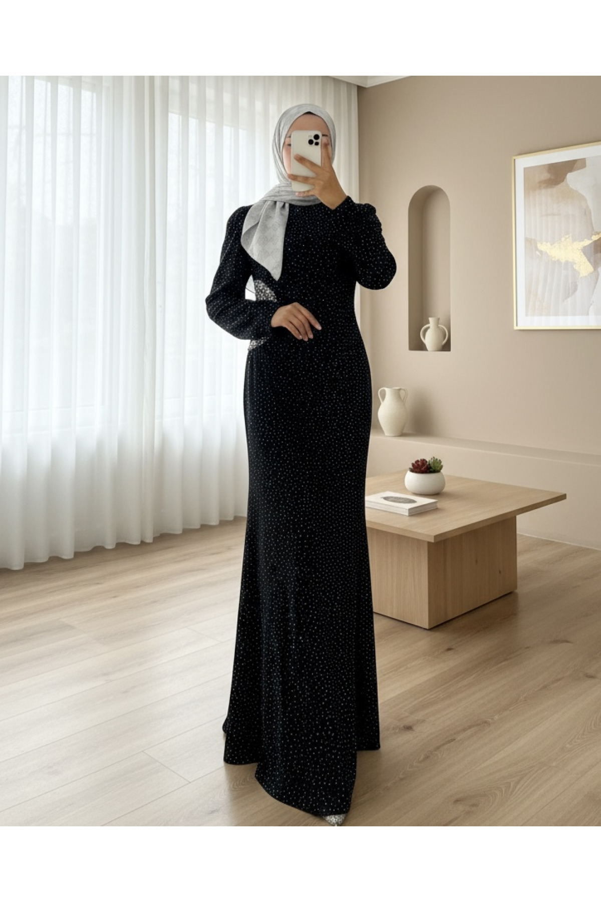 Saten Taş Detaylı Drapeli Venna Tesettür Abiye Siyah Saten Taş Detaylı Drapeli Venna Tesettür Abiye Siyah ZNNVNN2356 44