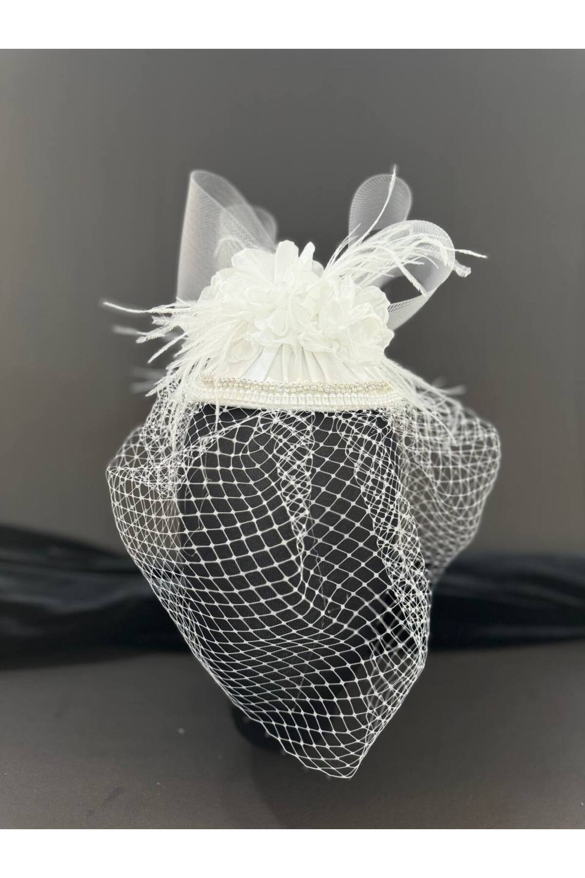 Yuvarlak Formlu Tüy Detaylı Gelin Kep Boncuklu Nikah Şapkası Yuvarlak Formlu Tüy Detaylı Gelin Kep Boncuklu Nikah Şapkası VVNKP101201 تک سایز