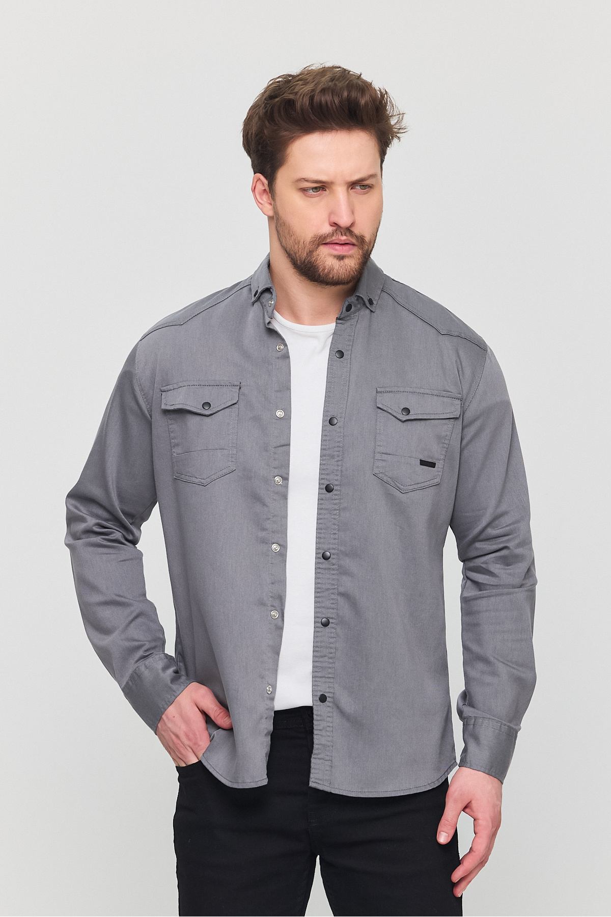 Erkek Gömlek Slim Fit Erkek Gri Kot Gömlek Erkek Gömlek Slim Fit Erkek Gri Kot Gömlek YXC16176 XXS/P