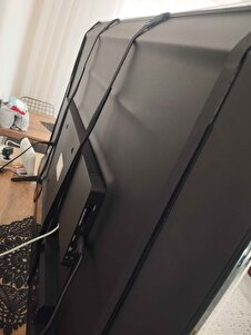 Ürün güzel kaliteli beni tv samsung alttan yaklaşık 3 cm fazlalık var ama sorun değil, yanlar tam oturdu. Görüntü kalitesi güzel. Dört noktadan amerikan fermuarı ile sabitleme olması da bombelenmeyi önlüyor. Kargo gayet hızlıydı, açıkçası kargo aracında paketin çapraz bir şekilde durduğunu ve üzerinde diğer paketler olduğunu görünce korktum ama paketleme o kadar iyiydi ki ürün sapsağlam çıktı çok şükür. Telefon standı hediyesi için de teşekkürler.