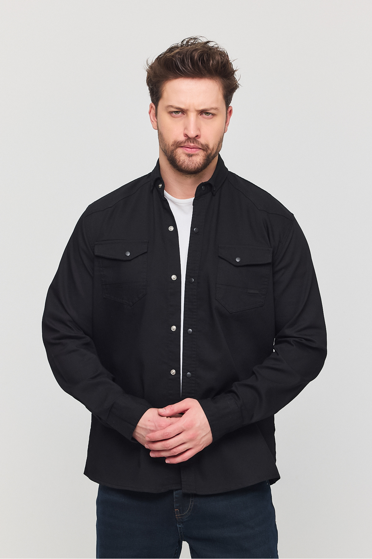 Erkek Gömlek Slim Fit Erkek Siyah Kot Gömlek Erkek Gömlek Slim Fit Erkek Siyah Kot Gömlek YXC16176 XXS-XS