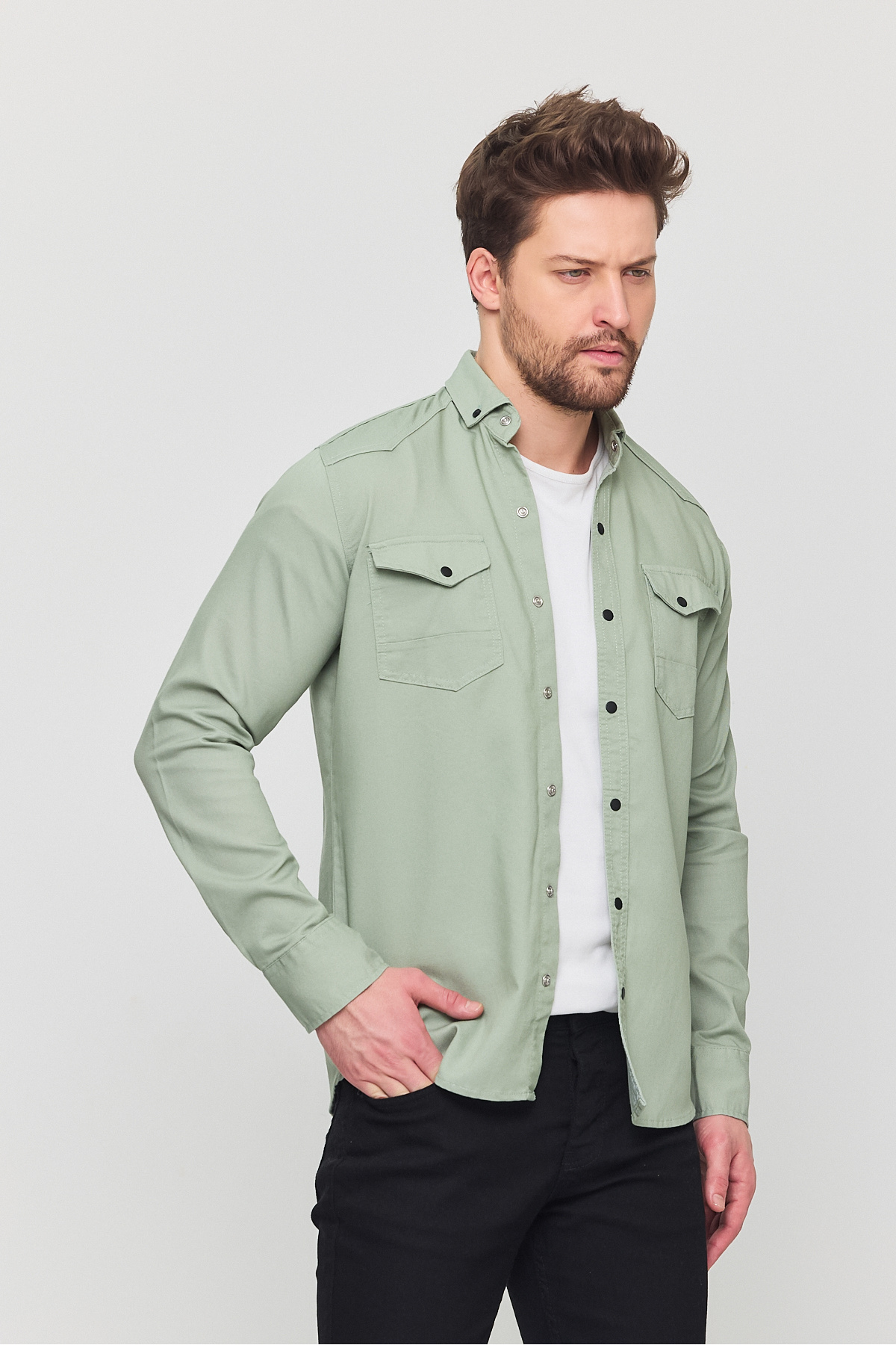Erkek Gömlek Slim Fit Erkek Su Yeşili Kot Gömlek Erkek Gömlek Slim Fit Erkek Su Yeşili Kot Gömlek YXC16176 XXS/P