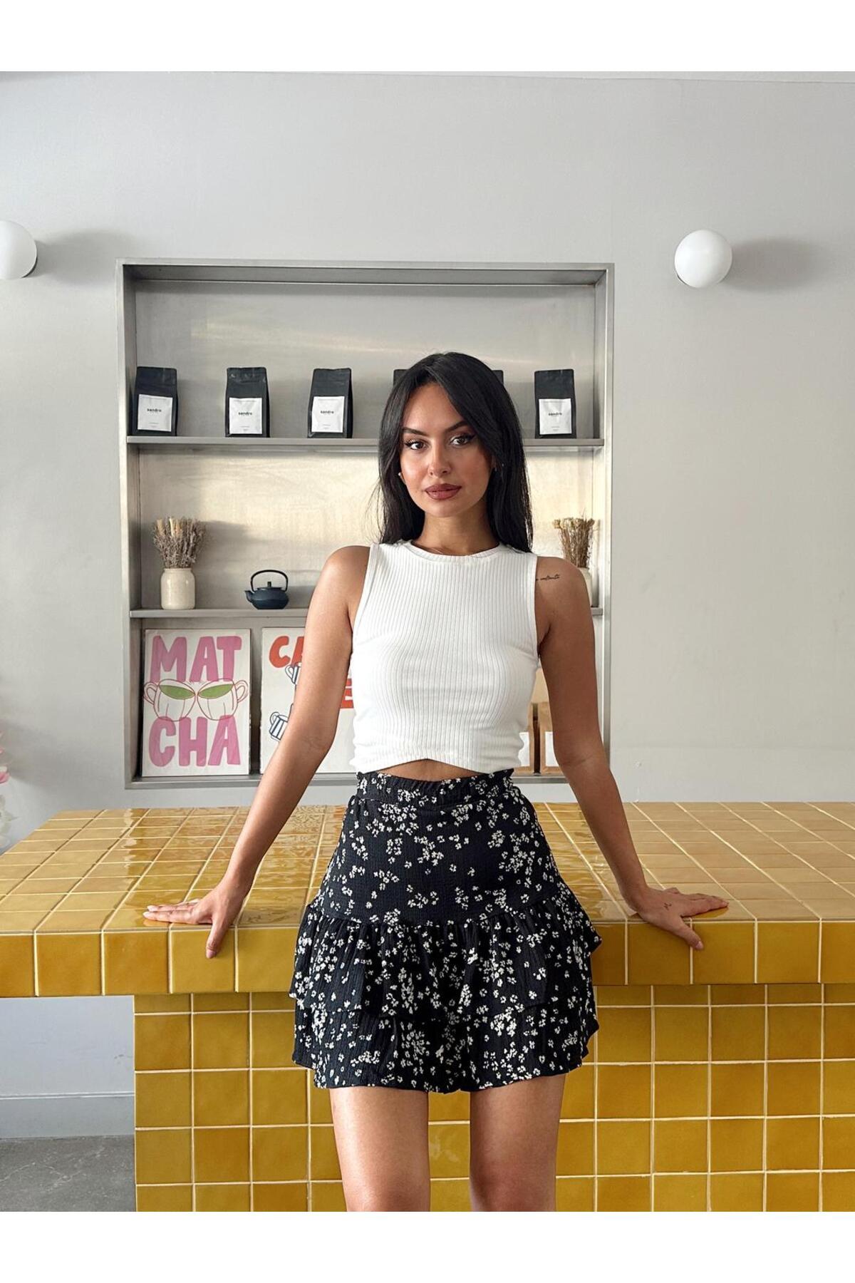 KADIN VOLANLI ÇİÇEK DESENLİ MİNİ ŞORT ETEK RD1037 KADIN VOLANLI ÇİÇEK DESENLİ MİNİ ŞORT ETEK RD1037 M
