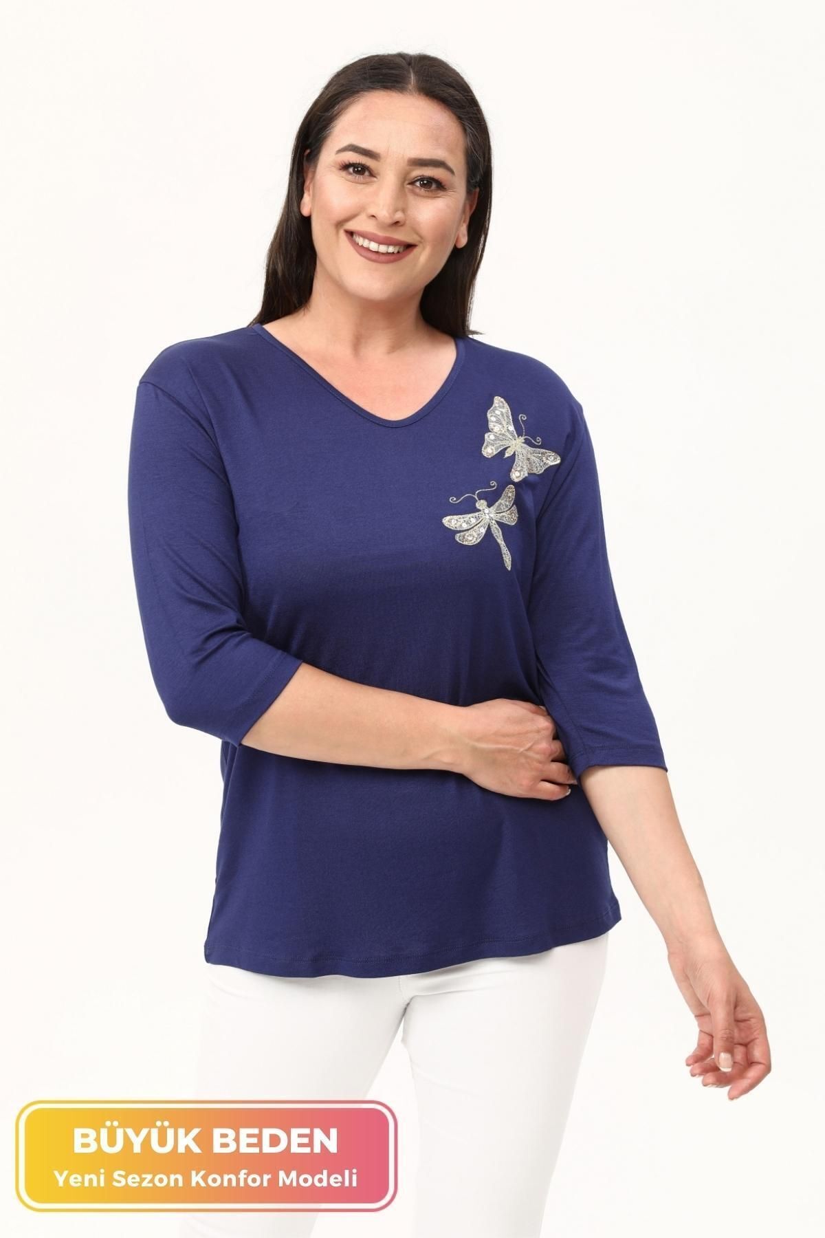 Büyük Beden Yeni Sezon Rahat Konfor Modeli Yaprak Desen Taş Baskılı Yarım Kollu Anne 4 Mevsim Bluz Büyük Beden Yeni Sezon Rahat Konfor Modeli Yaprak Desen Taş Baskılı Yarım Kollu Anne 4 Mevsim Bluz Orta Yaş ve Üzeri Şans Penye TARZ8779 48