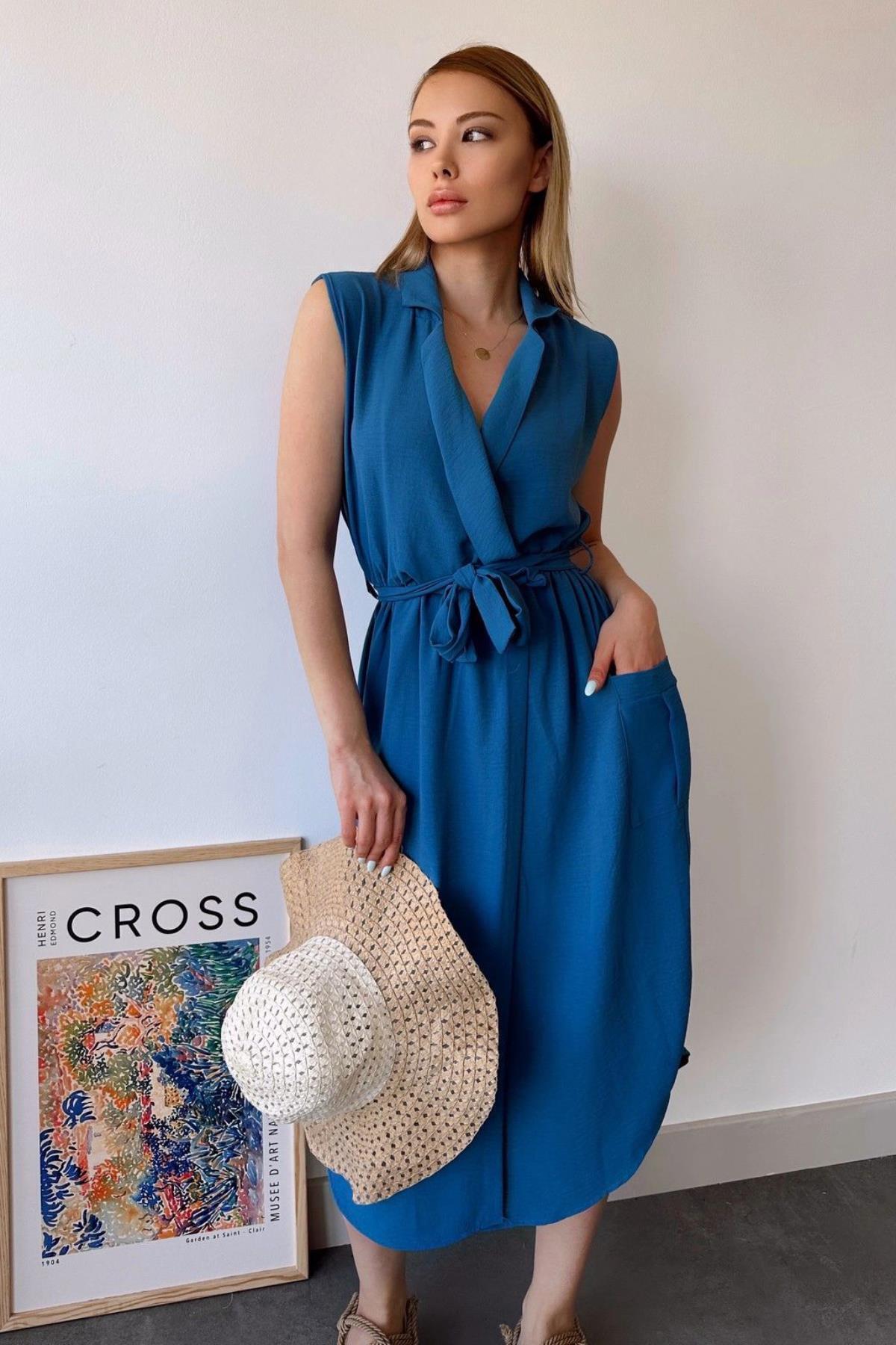 Kadın Siyah Kalın Askılı, Kruvaze Yaka, Düz Desen, Aerobin Yırtmaçlı, Kemerli Midi Elbise Kadın Siyah Kalın Askılı, Kruvaze Yaka, Düz Desen, Aerobin Yırtmaçlı, Kemerli Midi Elbise NY2881 42