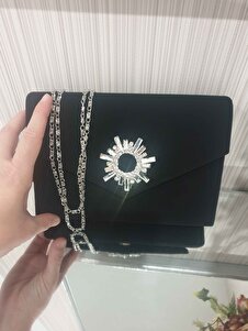 Süet Siyah Renkli Taş Aksesuarlı Mıknatıslı Zarf Kapak Elde Ve Omuz Askılı Kullanılabilen Abiye Çant Süet Siyah Renkli Taş Aksesuarlı Mıknatıslı Zarf Kapak Elde Ve Omuz Askılı Kullanılabilen Abiye Çant PİE2001 تک سایز
