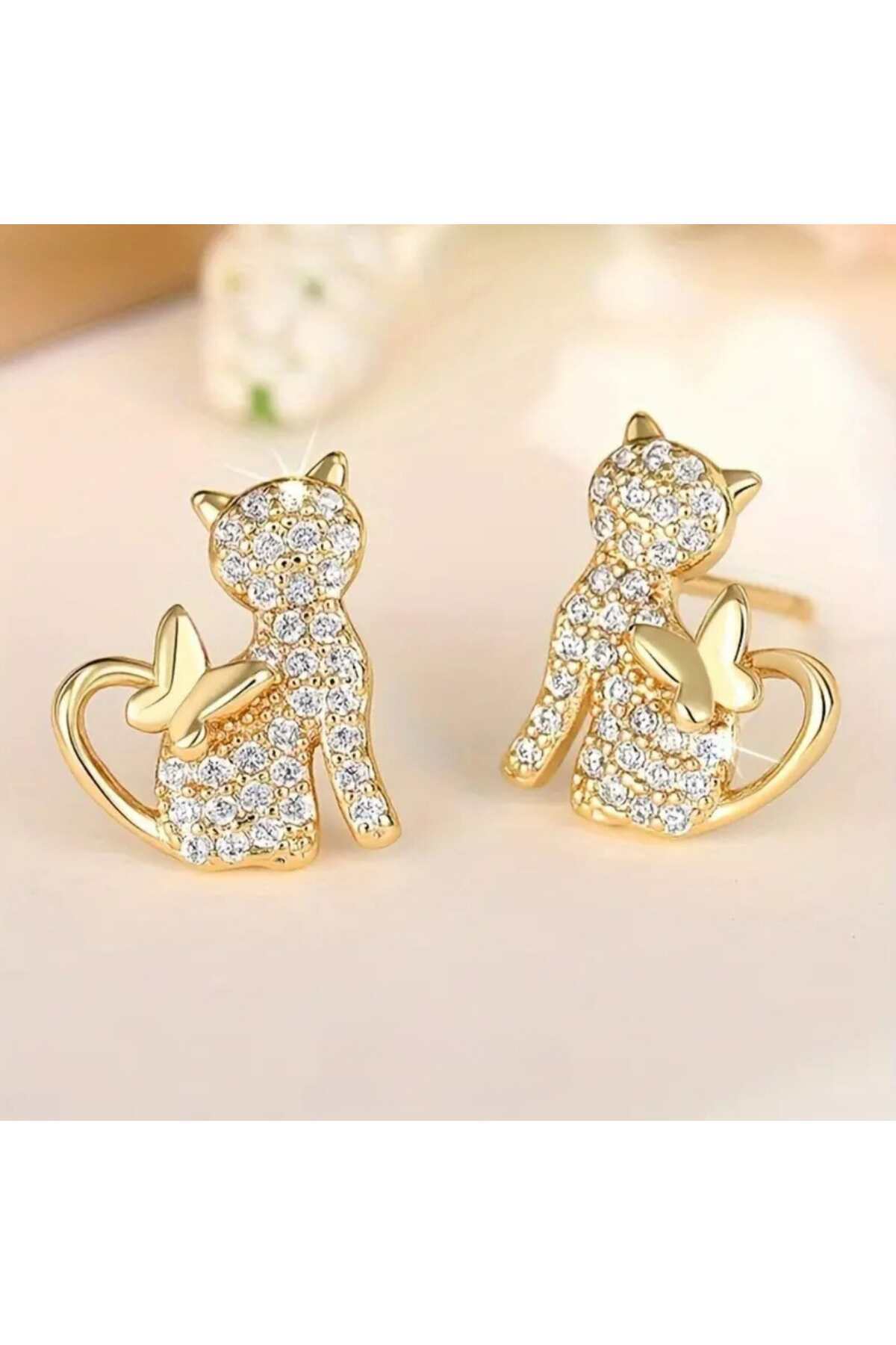 Doğal Pembe Kedi Gözü Altın Kaplama Gümüş Küpe Doğal Pembe Kedi Gözü Altın Kaplama Gümüş Küpe SVMKPE تک سایز