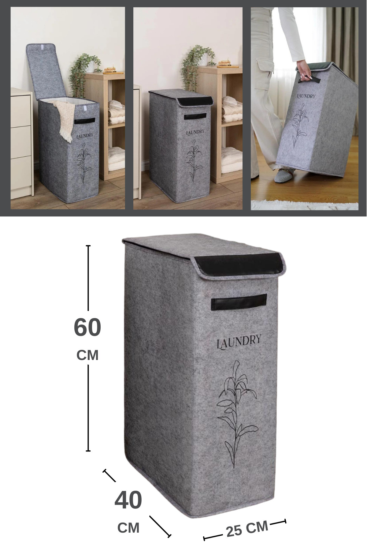 Felted Deri Detaylı Lüks Keçe Kirli Çamaşır Sepeti Felted Deri Detaylı Lüks Keçe Kirli Çamaşır Sepeti ALS-056041461 تک سایز