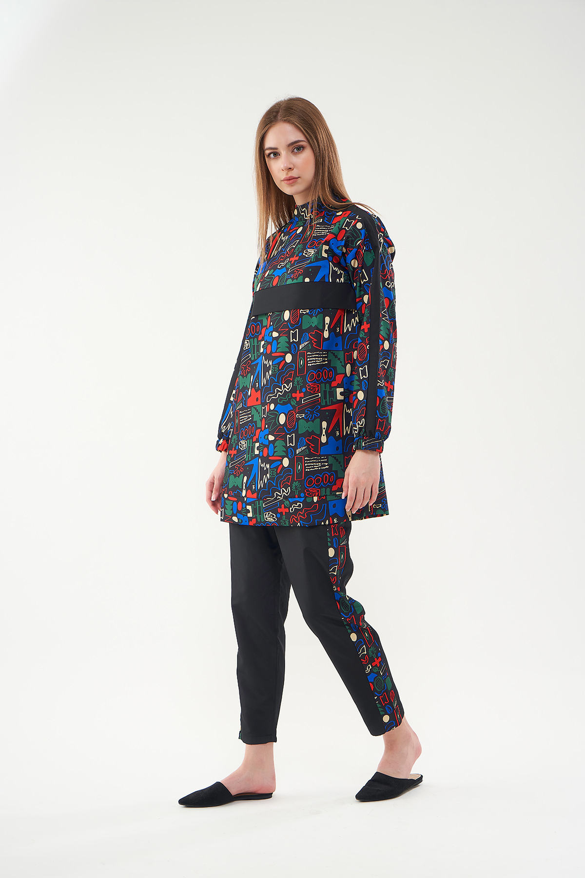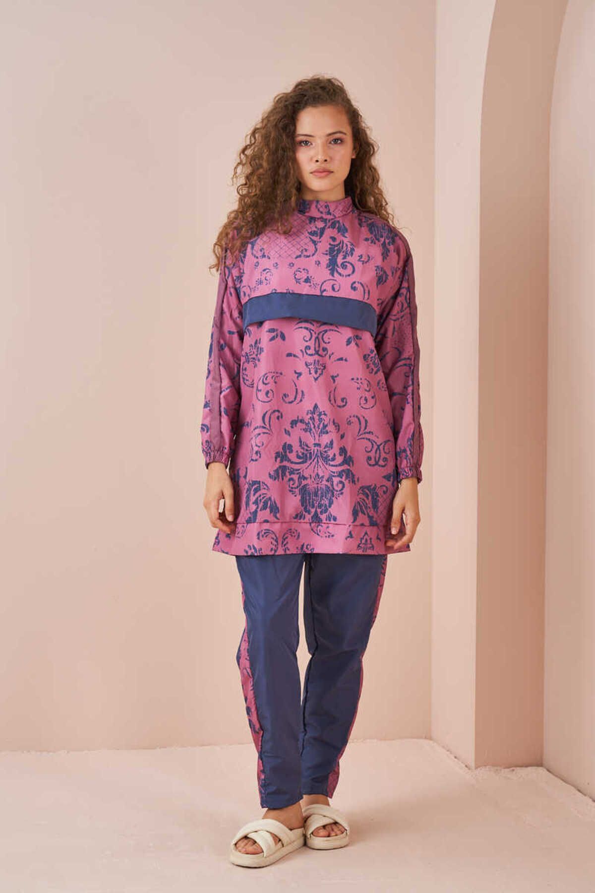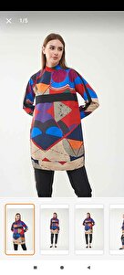 Desenli Tesettür Mayo Kırmızı Kısa Desenli Tesettür Mayo Kırmızı Kısa 4cae-1454 44