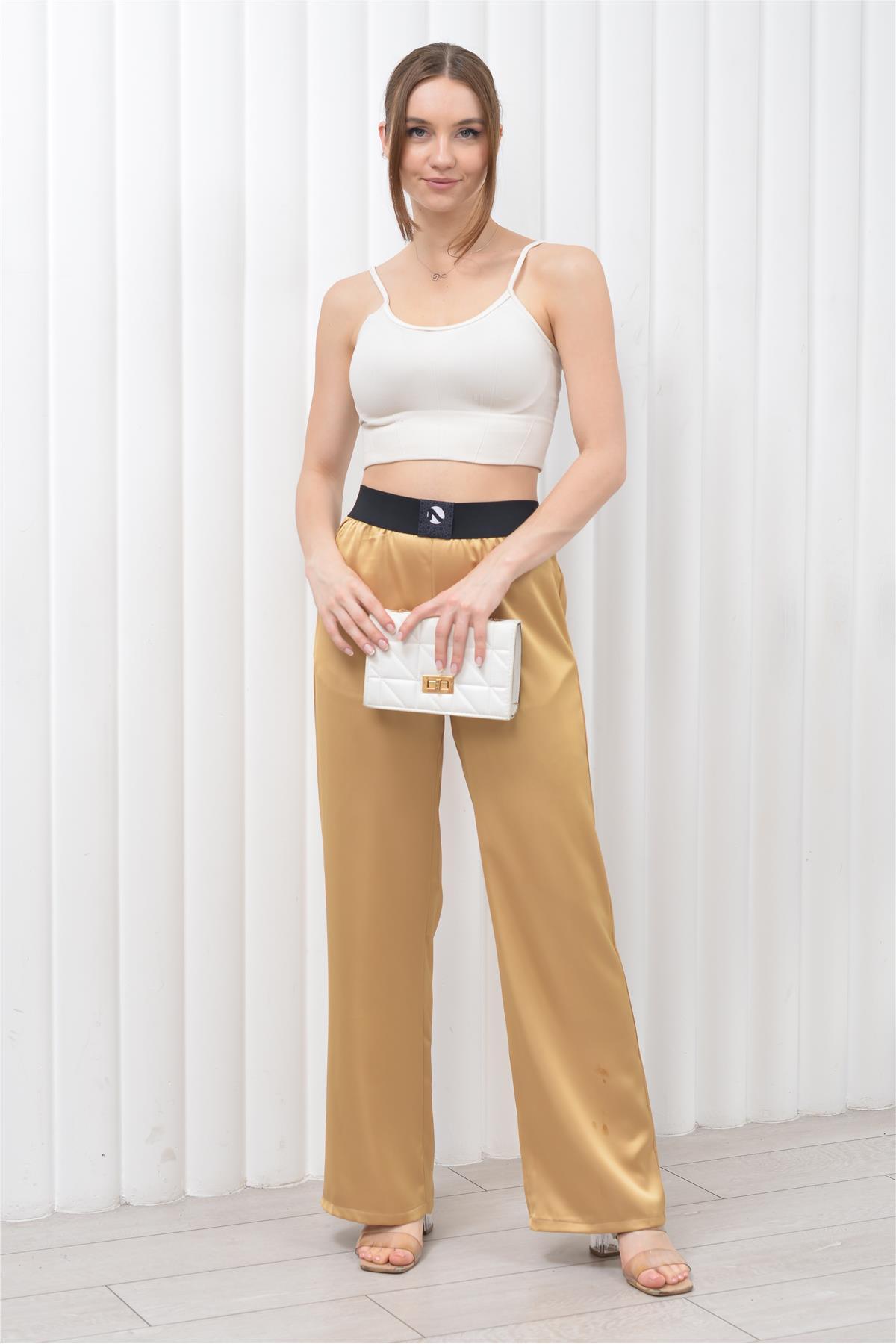 Kadın Beli Lastikli Palazzo Saten Pantolon Lila Kadın Beli Lastikli Palazzo Saten Pantolon Lila STNPT1037 42