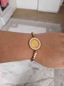 Kadın Gold Arpa Çeyrek Takılan 316 L Çelik Zirkon Taşlı Bileklik Kadın Gold Arpa Çeyrek Takılan 316 L Çelik Zirkon Taşlı Bileklik Zdar11 تک سایز