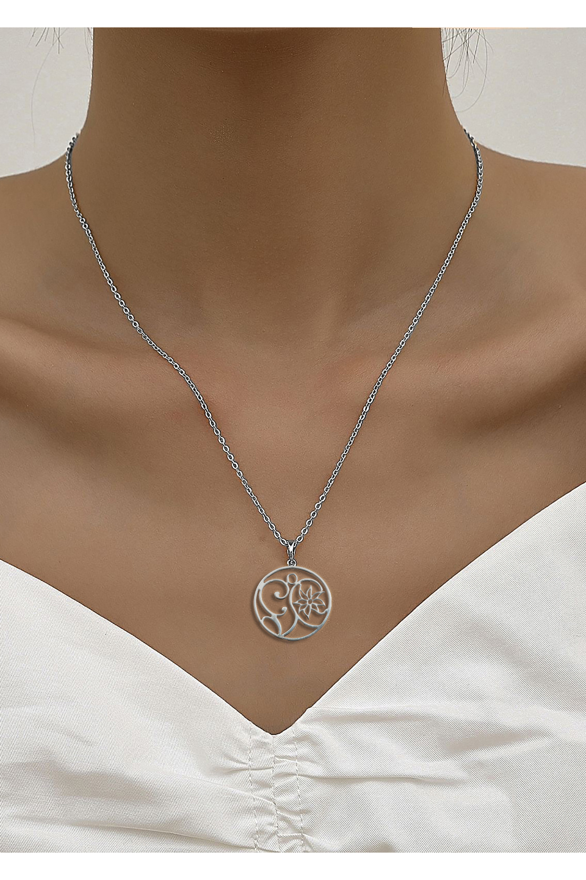 925 Ayar Gümüş Çiçek Tasarımlı Kadın Kolye 925 Ayar Gümüş Çiçek Tasarımlı Kadın Kolye MIALS68 تک سایز