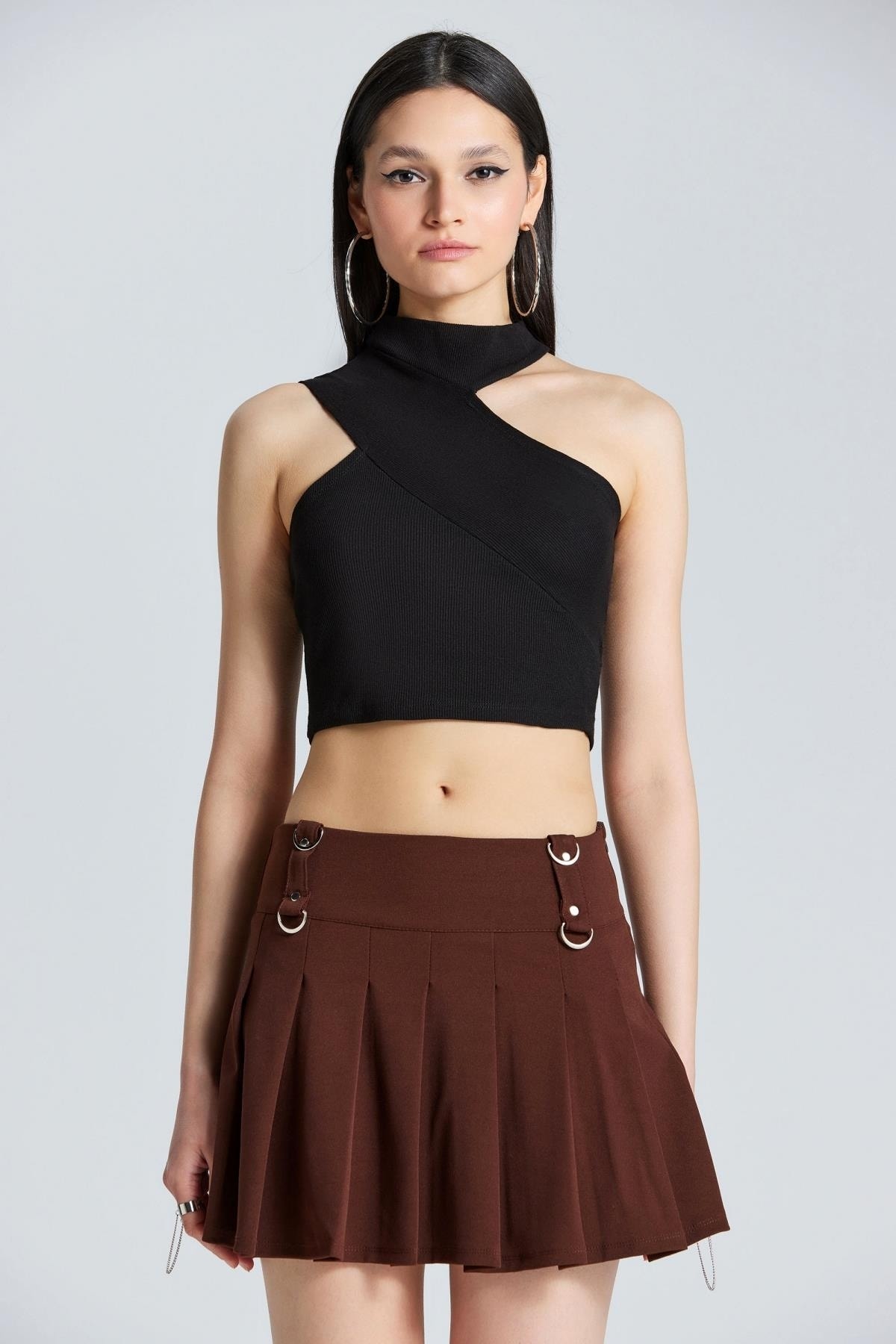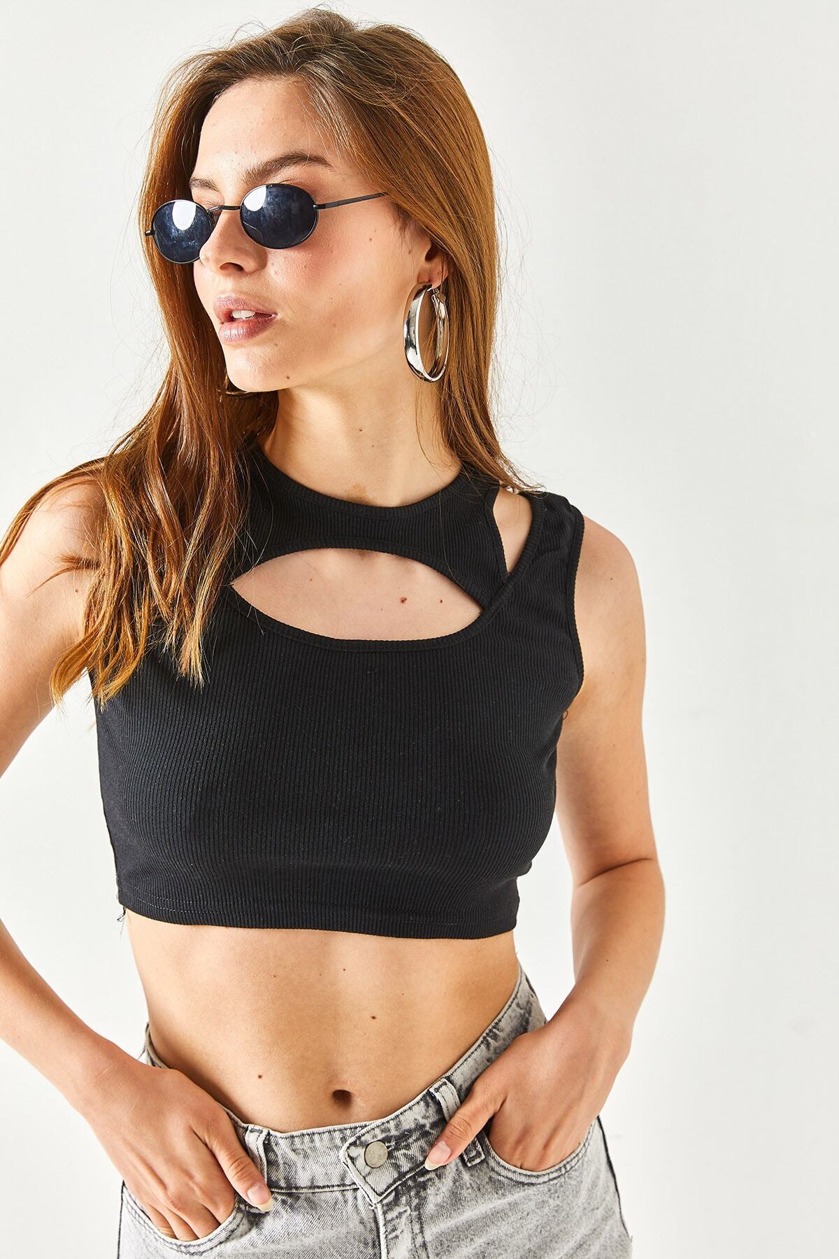 Kadın Siyah Cut Out Detaylı Fitilli Crop Bluz BLZ-19002341 Kadın Siyah Cut Out Detaylı Fitilli Crop Bluz BLZ-19002341 S/M