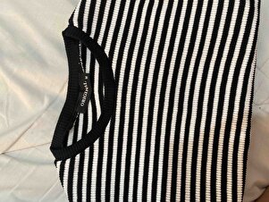 Kadın Çizgili Siyah Kısa Kollu Yırtmaçlı Etekli Likralı Takım TKM-19000194 Kadın Çizgili Siyah Kısa Kollu Yırtmaçlı Etekli Likralı Takım TKM-19000194 L