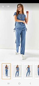 Kadın Bebe Mavi Yanı Büzgülü Bluz Palazzo Pantolon Takım TKM-19000196 Kadın Bebe Mavi Yanı Büzgülü Bluz Palazzo Pantolon Takım TKM-19000196 L