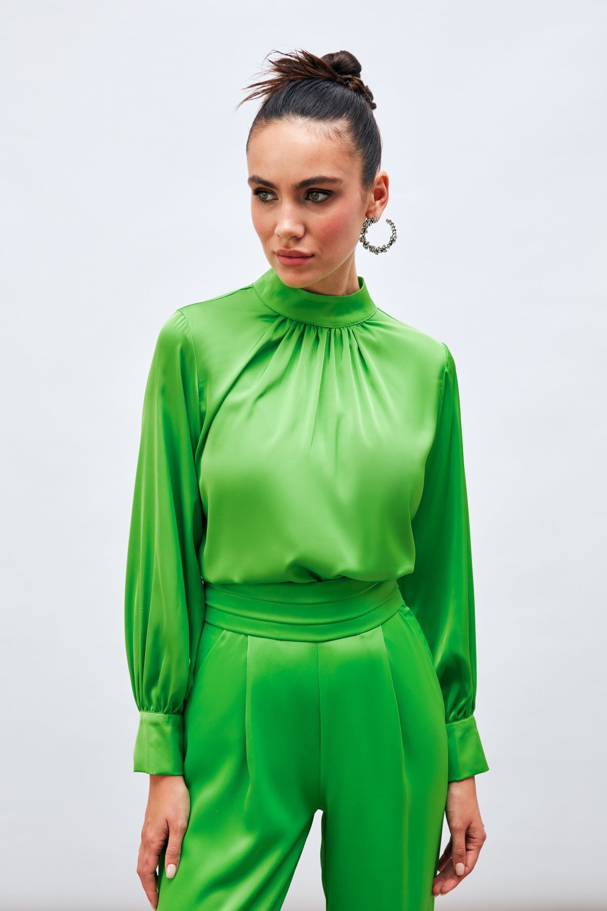 Yaka Detaylı Saten Bluz - AÇIK YEŞİL Yaka Detaylı Saten Bluz - AÇIK YEŞİL STN139KBL874 42