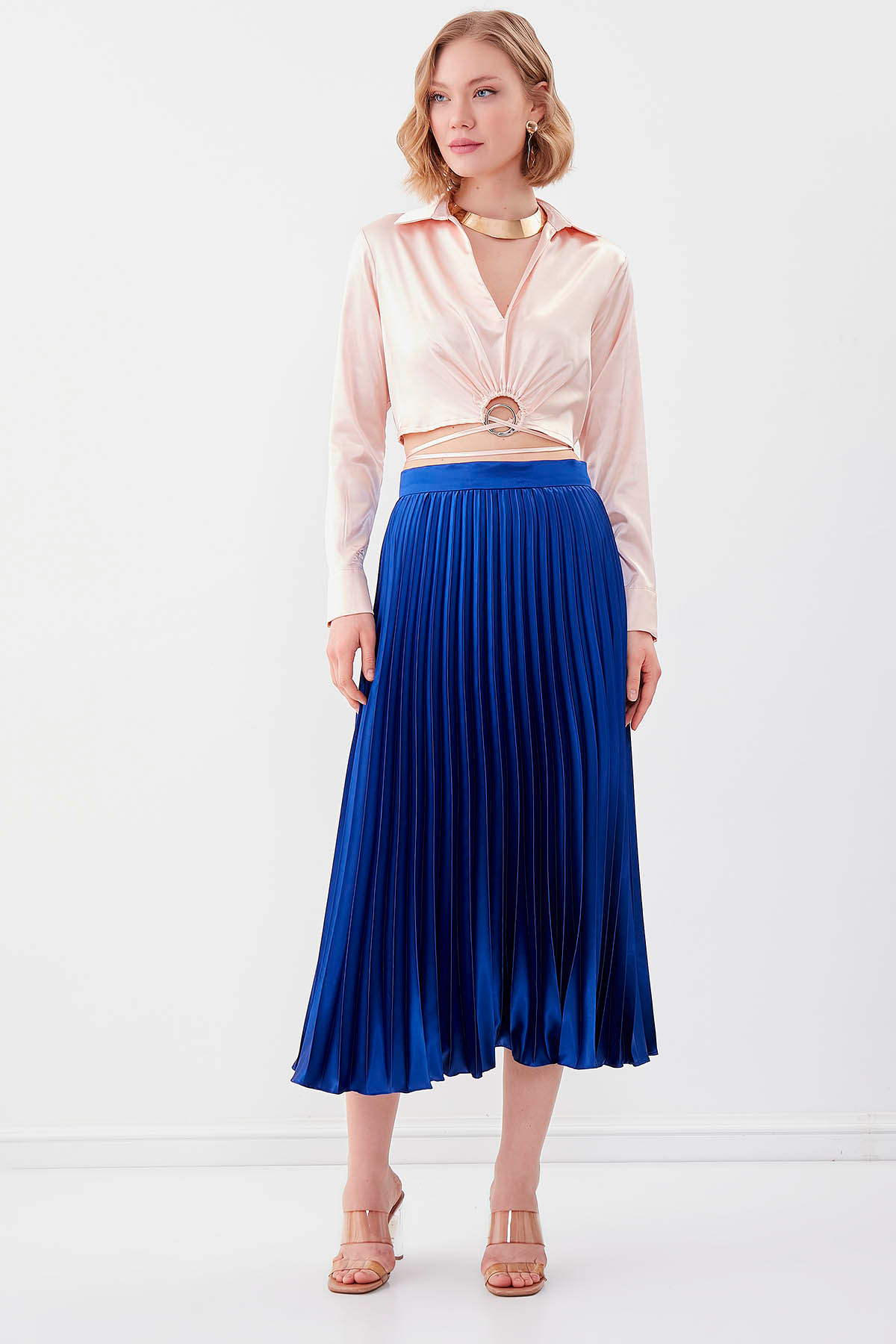 Piliseli Midi Boy Saten Etek Piliseli Midi Boy Saten Etek 23-2331 M