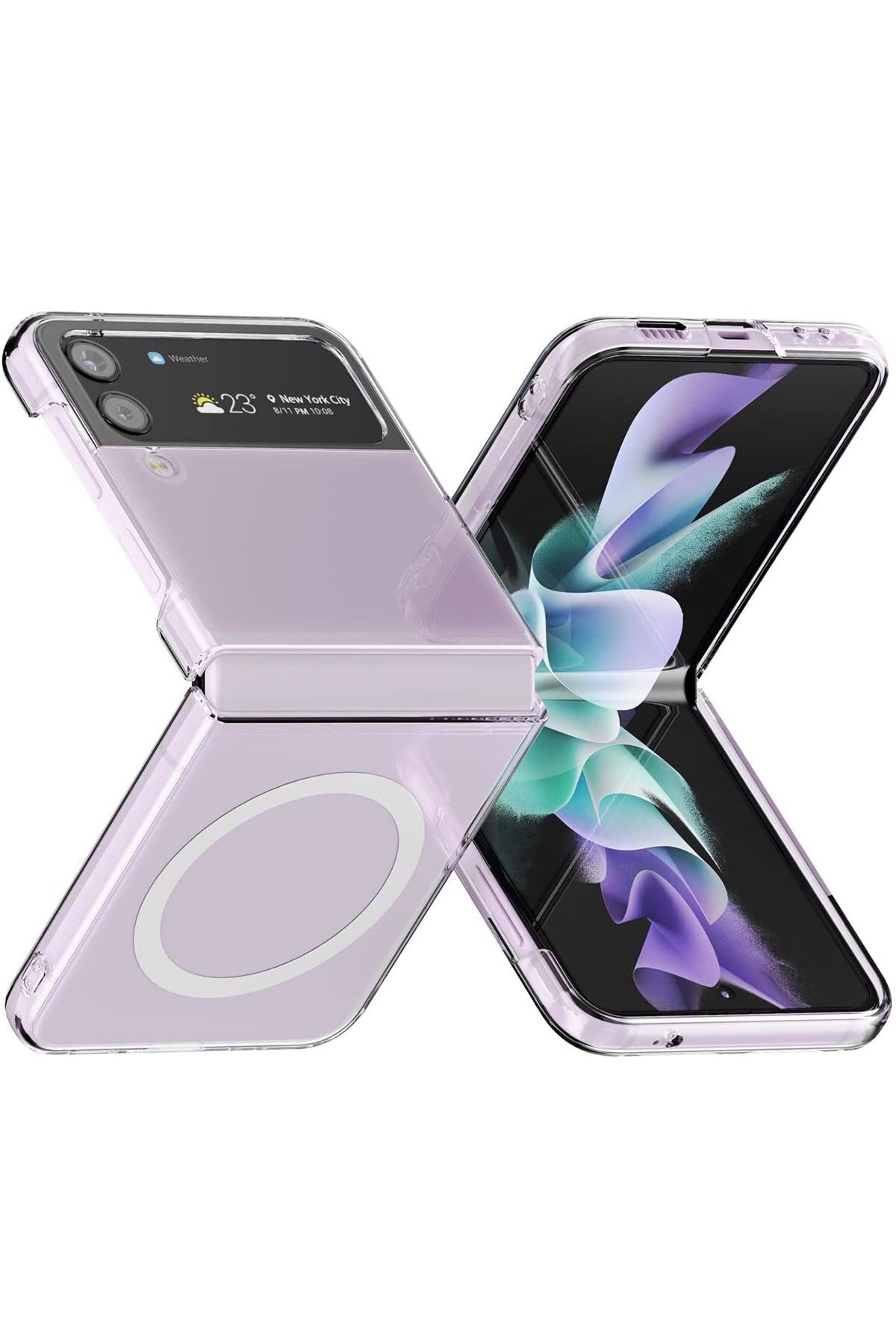 Samsung Galaxy Z Flip 3 ile Uyumlu Kablosuz Şarj Magsafe Özellikli Şeffaf Silikon Kılıf Samsung Galaxy Z Flip 3 ile Uyumlu Kablosuz Şarj Magsafe Özellikli Şeffaf Silikon Kılıf zflip3mag تک سایز