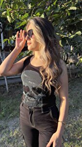 Dar Kesim Kurukafa Crystal Taşlı Tasarım Pamuk Kadın Kalın Askılı Kolsuz T-shirt Atlet Siyah Dar Kesim Kurukafa Crystal Taşlı Tasarım Pamuk Kadın Kalın Askılı Kolsuz T-shirt Atlet Siyah 775 XL