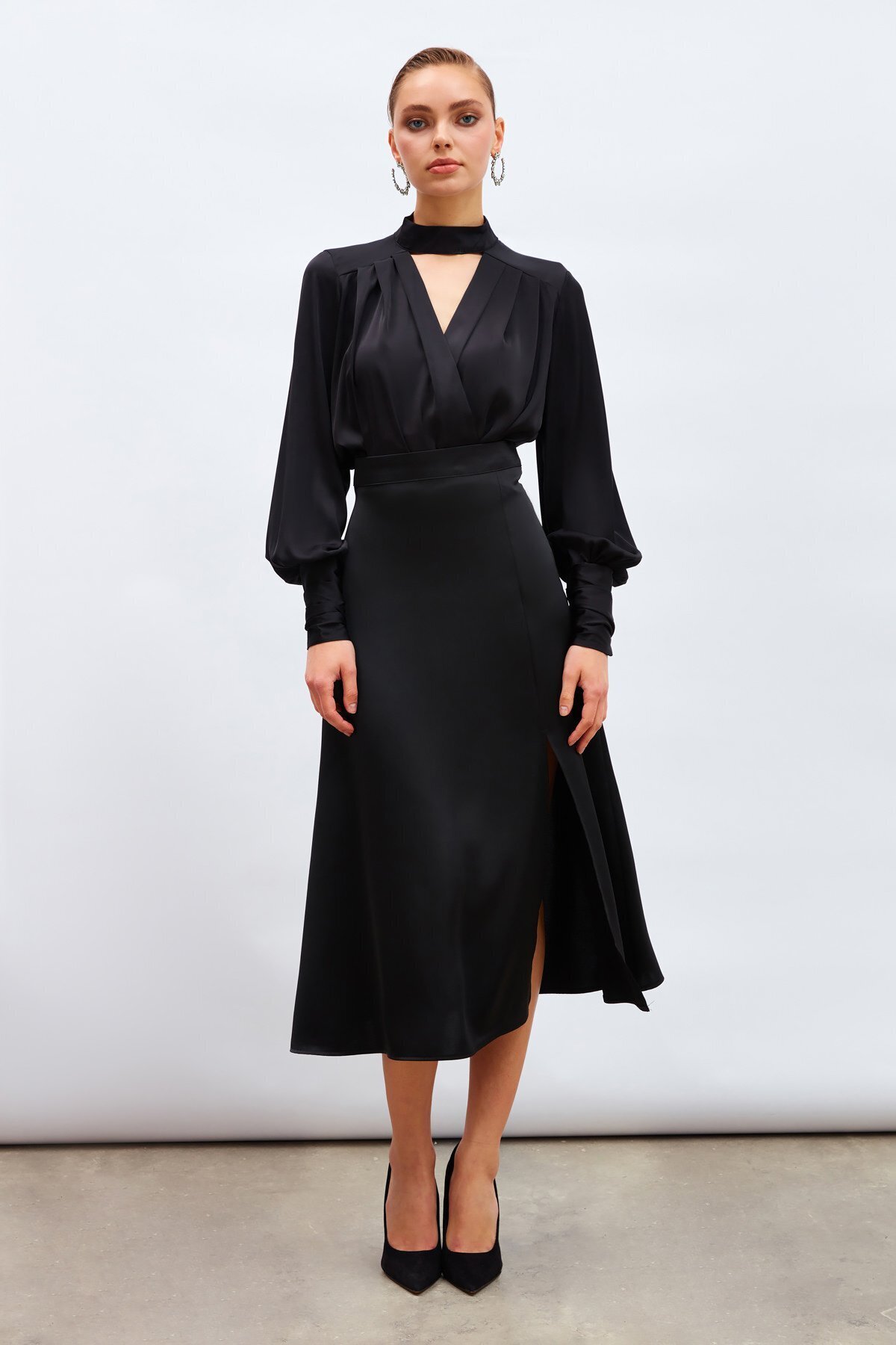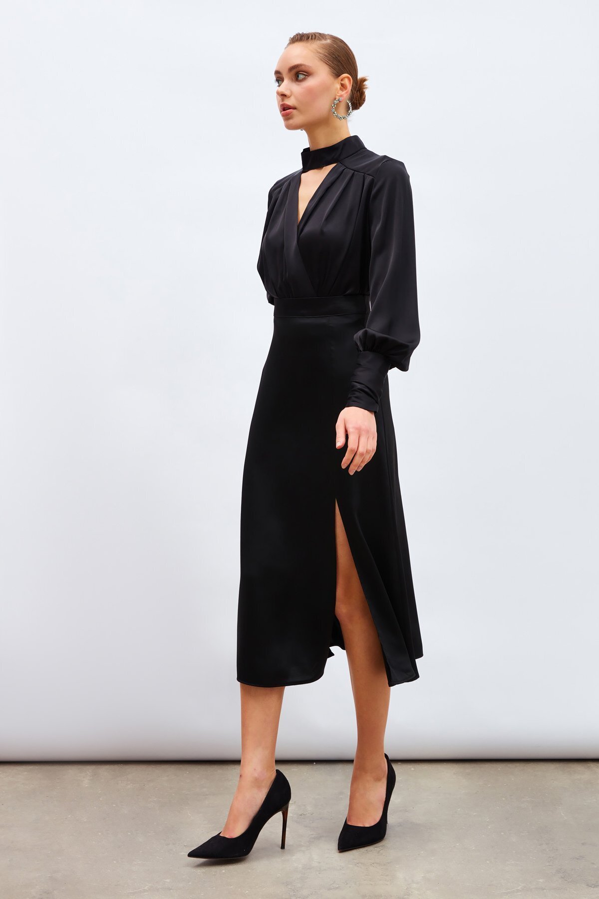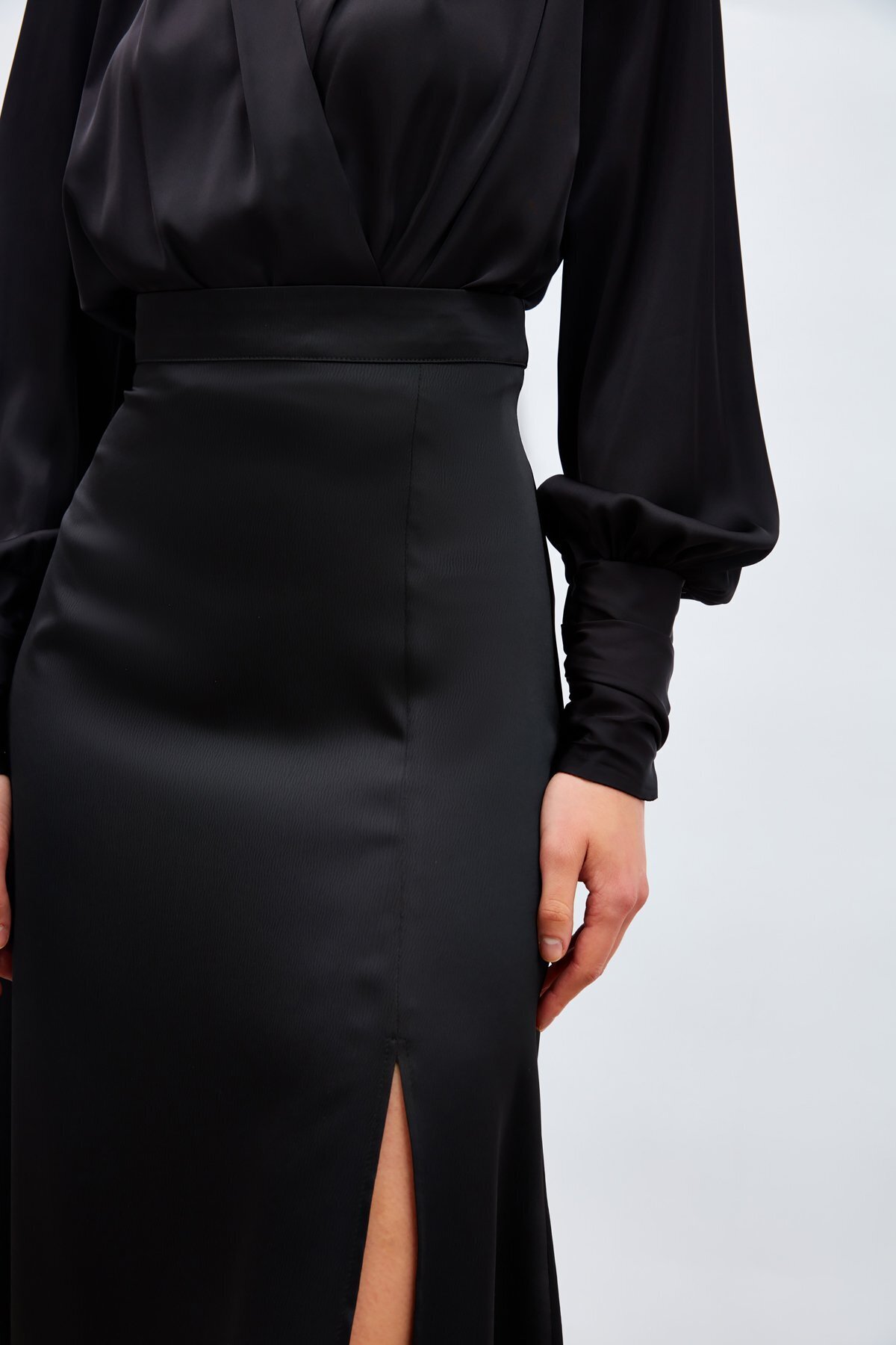 Yırtmaçlı Saten Etek - SİYAH Yırtmaçlı Saten Etek - SİYAH STN139KET1134 42