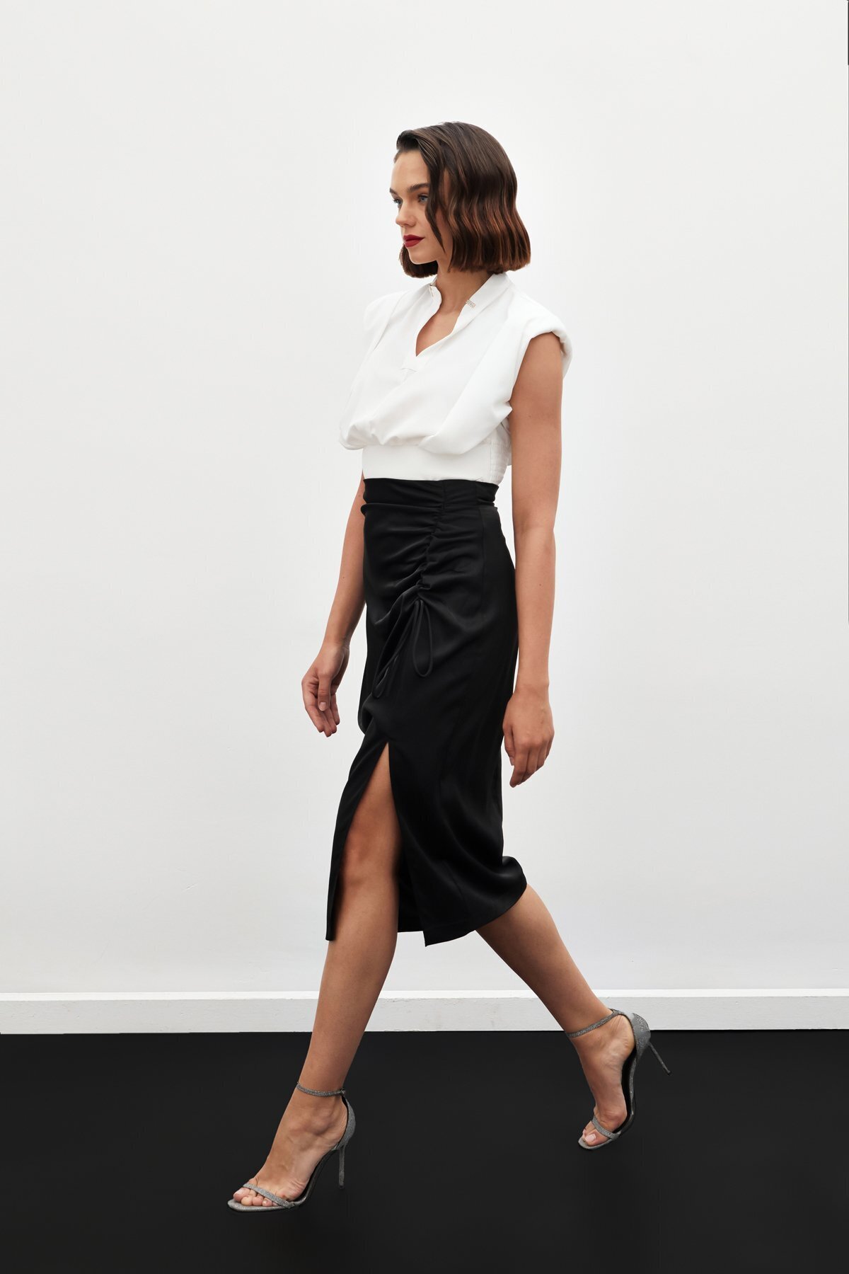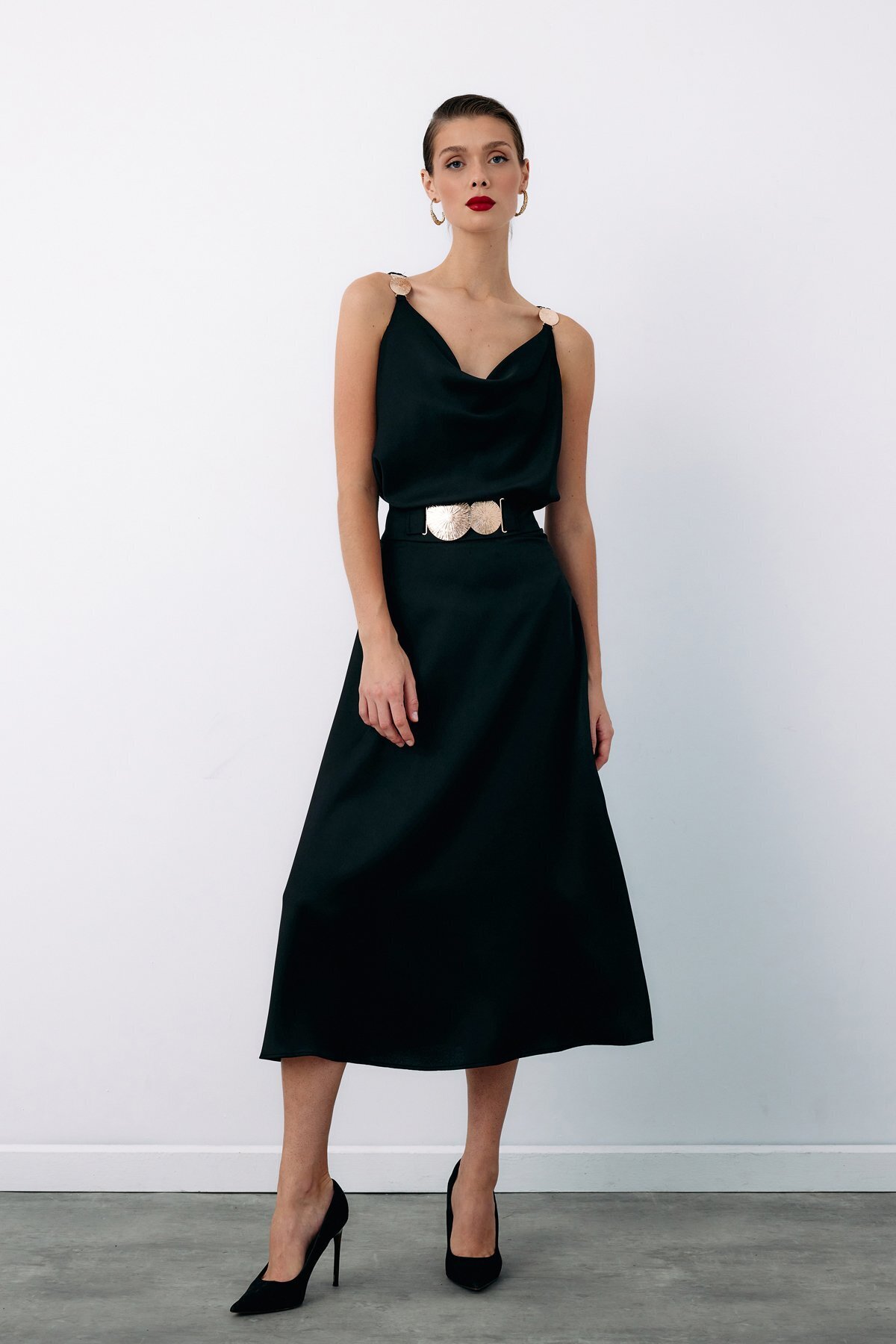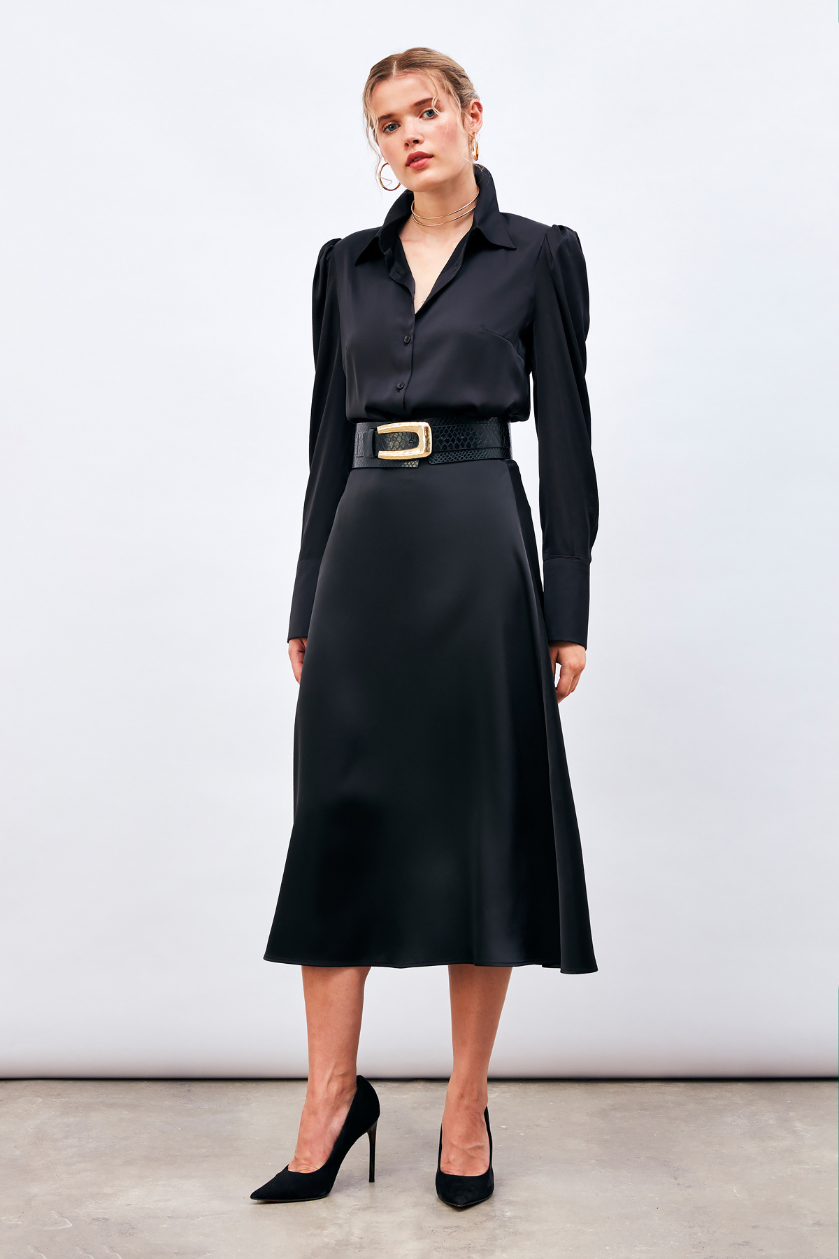 Yırtmaçlı Saten Etek - SİYAH Yırtmaçlı Saten Etek - SİYAH STN139KET1134 42