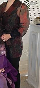 Kırmızı Kuşaklı Organze Şifon Tül Kadın Ceket Tasarım Kırmızı Kuşaklı Organze Şifon Tül Kadın Ceket Tasarım P630S3903 2XL