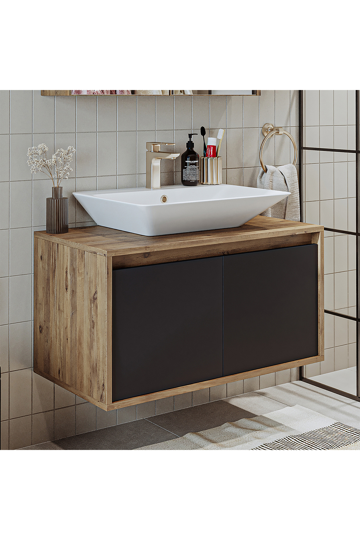 Ayaksız 2 Kapaklı Lavabolu Ahşap Siyah Suntalam 100 Cm Banyo Dolabı Ayaksız 2 Kapaklı Lavabolu Ahşap Siyah Suntalam 100 Cm Banyo Dolabı 2062 تک سایز
