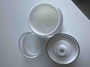 Ürün çok kaliteli gerçekten beklentimi karşıladı. Paketleme özenliydi teslimat da gayet hızlıydı. Alırken çok düşünmüştüm çünkü yorum sayısı çok azdı kafamda çok fazla soru işareti vardı ama şimdi o soruları yanıtlayacağım ve beklentinizi karşılıyorsa bu cevaplar bence düşünmeden alabilirsiniz. İç hacmi yaklaşık 50-75 ml arası alıyor. Fotoğrafa boyutunu da ekleyeceğim (yükseklik 7 cm). Bastığınız zaman basma şiddetinize göre ürünü dışarı veriyor. Güneş kremi için sonuna kadar basıyorum, nemlendirici için daha yumuşak bir basınç uyguluyorum. Temizlemesi aşırı kolay ürün parça parça ayrılabiliyor. Gelir gelmez ben her parçayı yıkadım o şekilde ürünümü içine koydum. Ben öneriyorum arkadaşlar 👍🏽