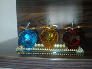 Dekoratif Kristal Tabak Üçlü Elma Renkli Dekoratif Kristal Tabak Üçlü Elma Renkli PM006596 تک سایز