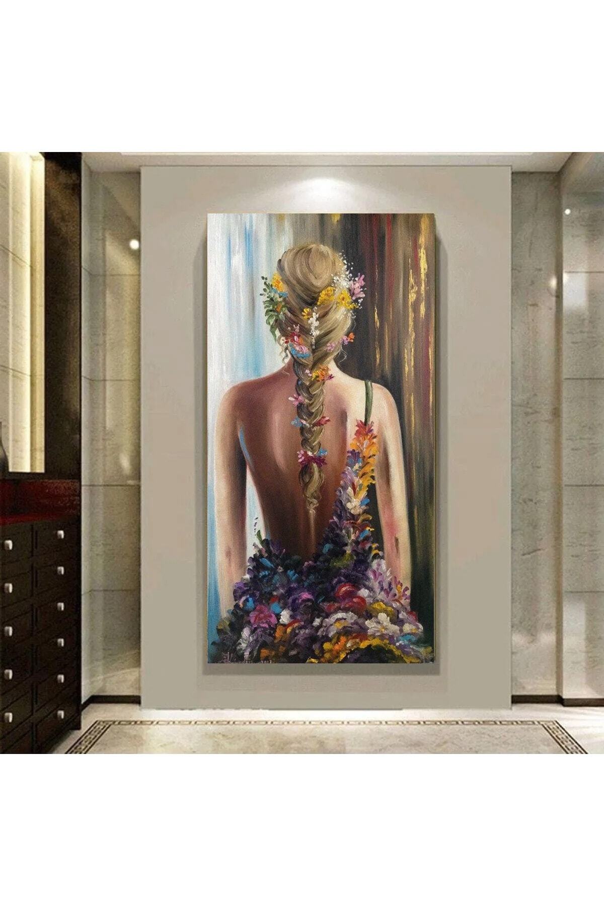 ARKASI DÖNÜK KAHVERENGİ SAÇLI KADIN KANVAS TABLO ARKASI DÖNÜK KAHVERENGİ SAÇLI KADIN KANVAS TABLO TD3021 50 x 50