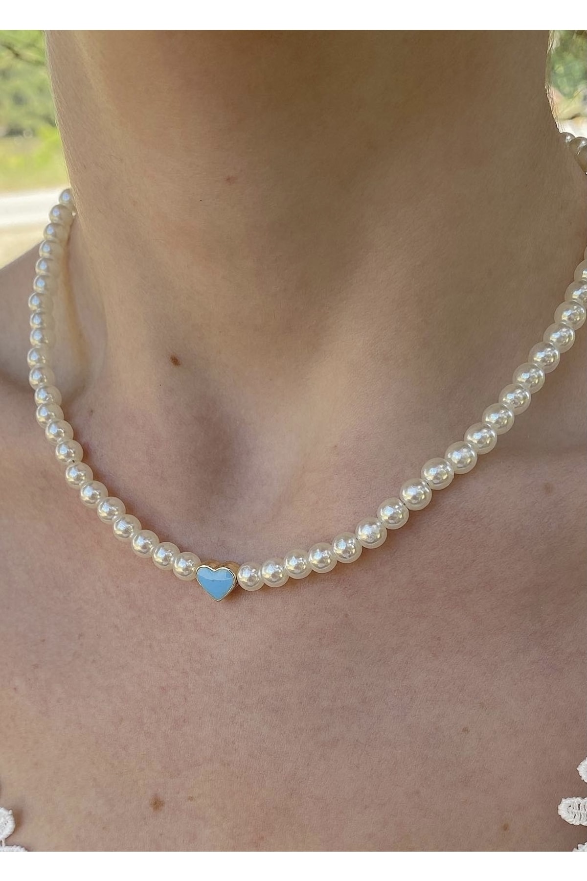 Kadın mavi sedef kalp anlamlı kolye Kadın mavi sedef kalp anlamlı kolye takı0261 تک سایز