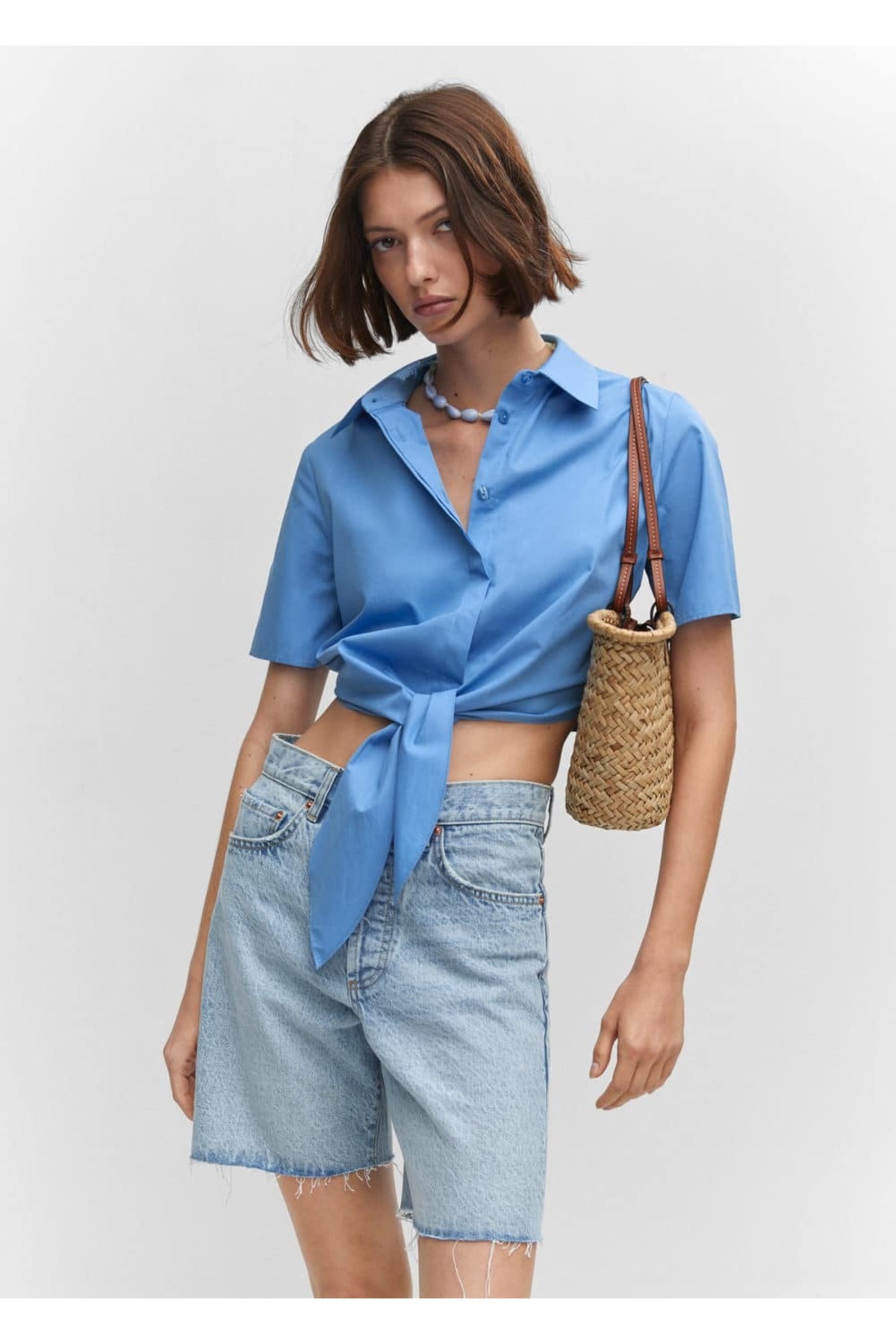 Düğüm detaylı crop gömlek Düğüm detaylı crop gömlek 57050487 XL