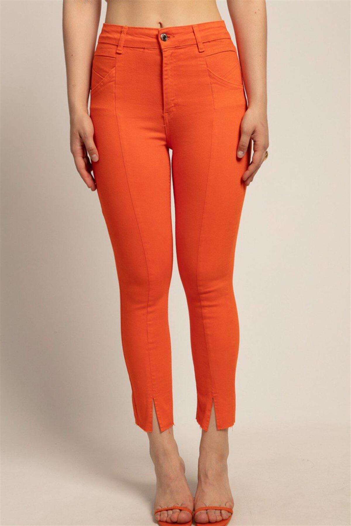 Kalın Kemerli D Tokalı Bilek Boy Normal Bel Likralı Kumaş Pantolon -Oranj Kalın Kemerli D Tokalı Bilek Boy Normal Bel Likralı Kumaş Pantolon -Oranj 3939 44