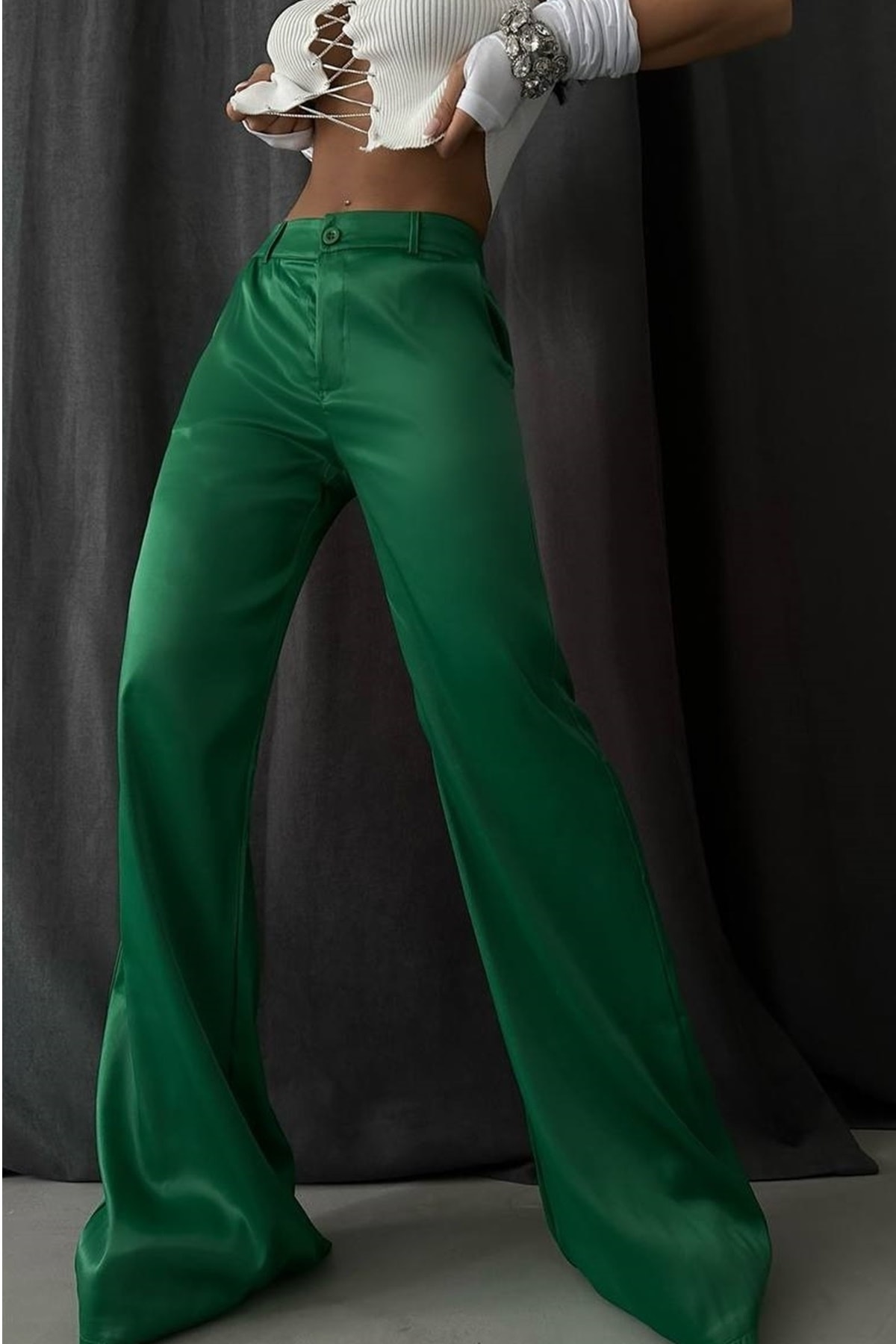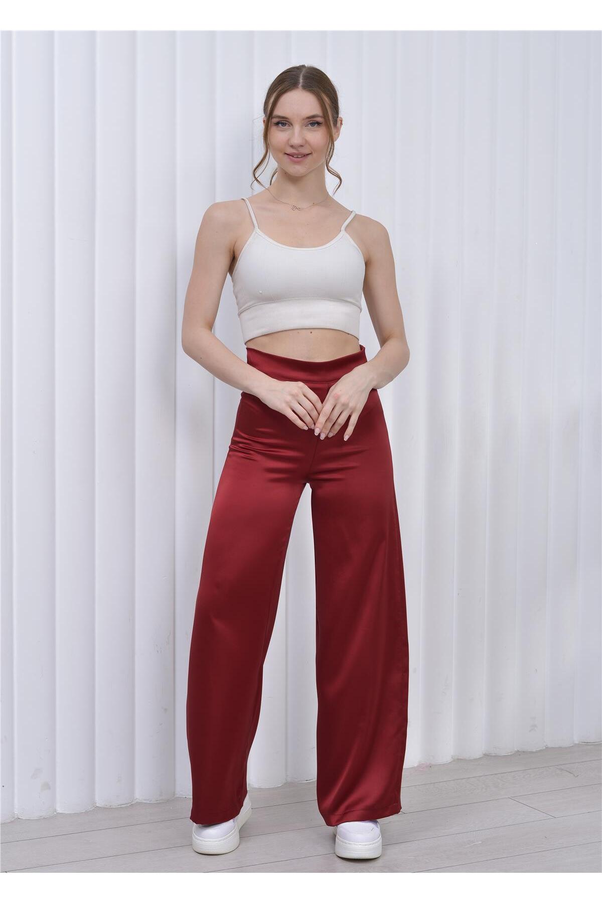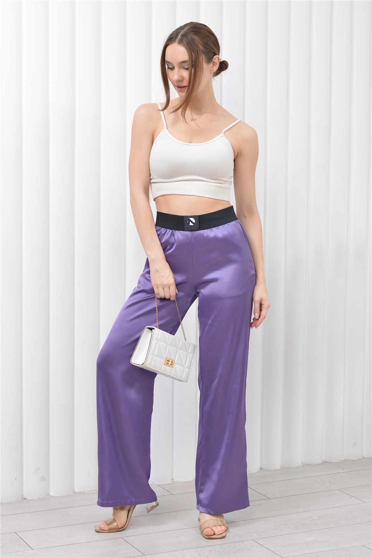 Kadın Yüksek Bel Saten Palazzo Pantolon Lila Kadın Yüksek Bel Saten Palazzo Pantolon Lila STNPT1038 36