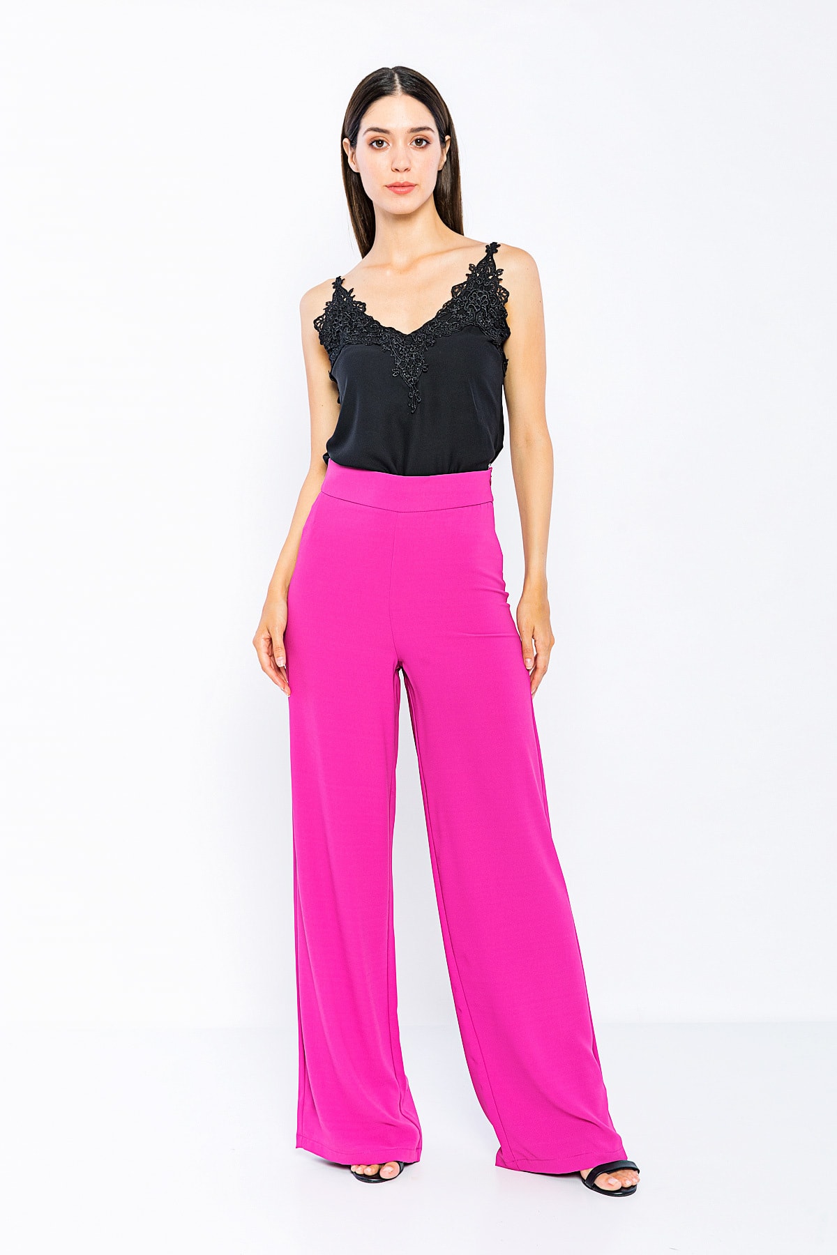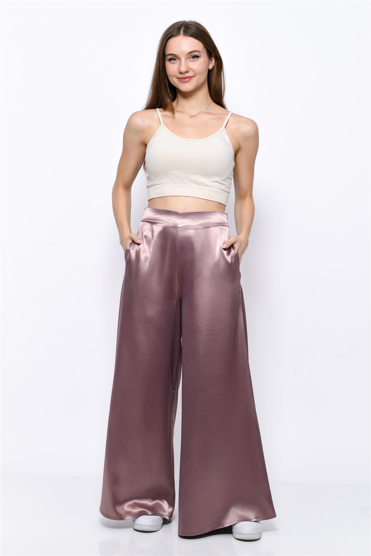 Kadın Yüksek Bel Saten Palazzo Pantolon Saks Kadın Yüksek Bel Saten Palazzo Pantolon Saks STNPT1038 36