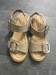 Albania Nude Hakiki Deri Altın Tokalı Kadın Sandalet Albania Nude Hakiki Deri Altın Tokalı Kadın Sandalet 018-3219 40