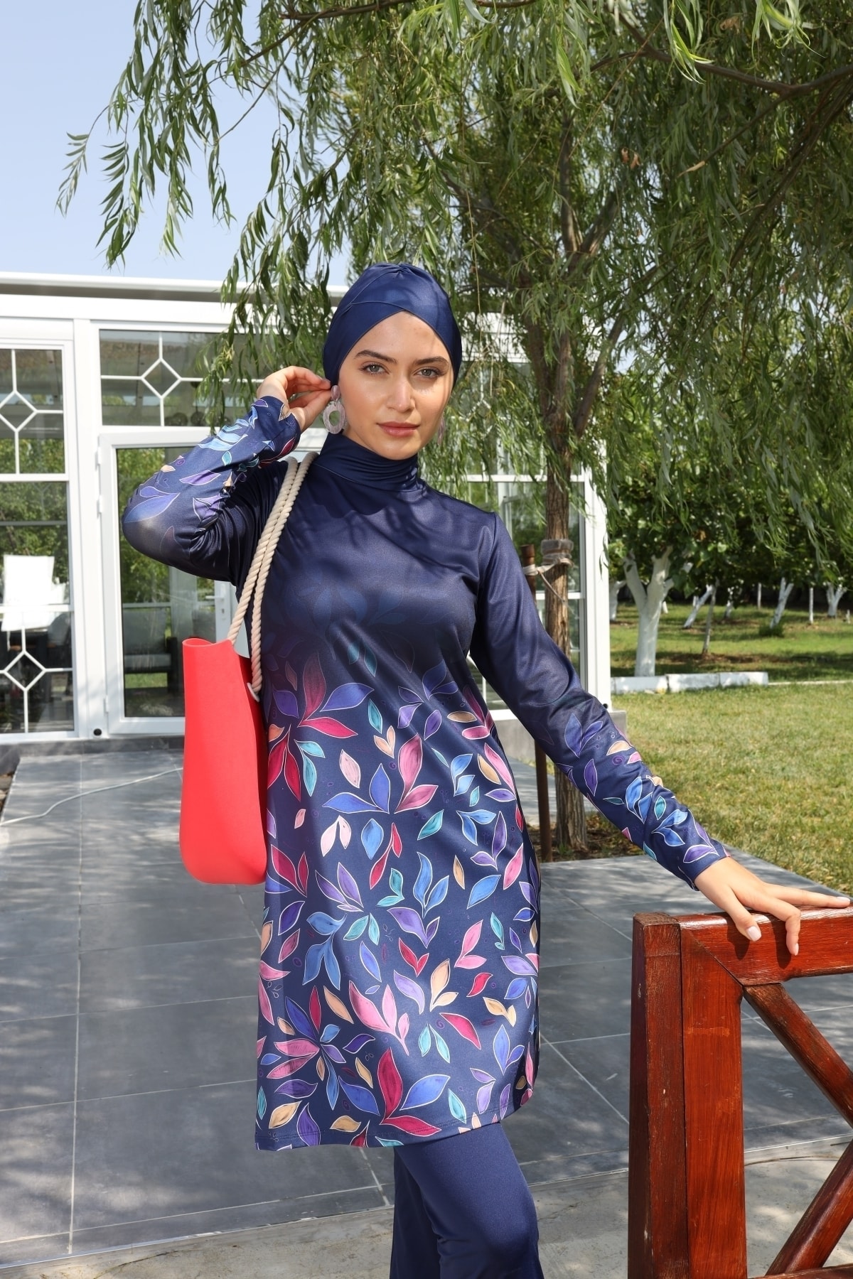 Tesettür Mayo Likralı Lacivert Dev Papatyalı Tesettür Mayo Likralı Lacivert Dev Papatyalı 274/02 46