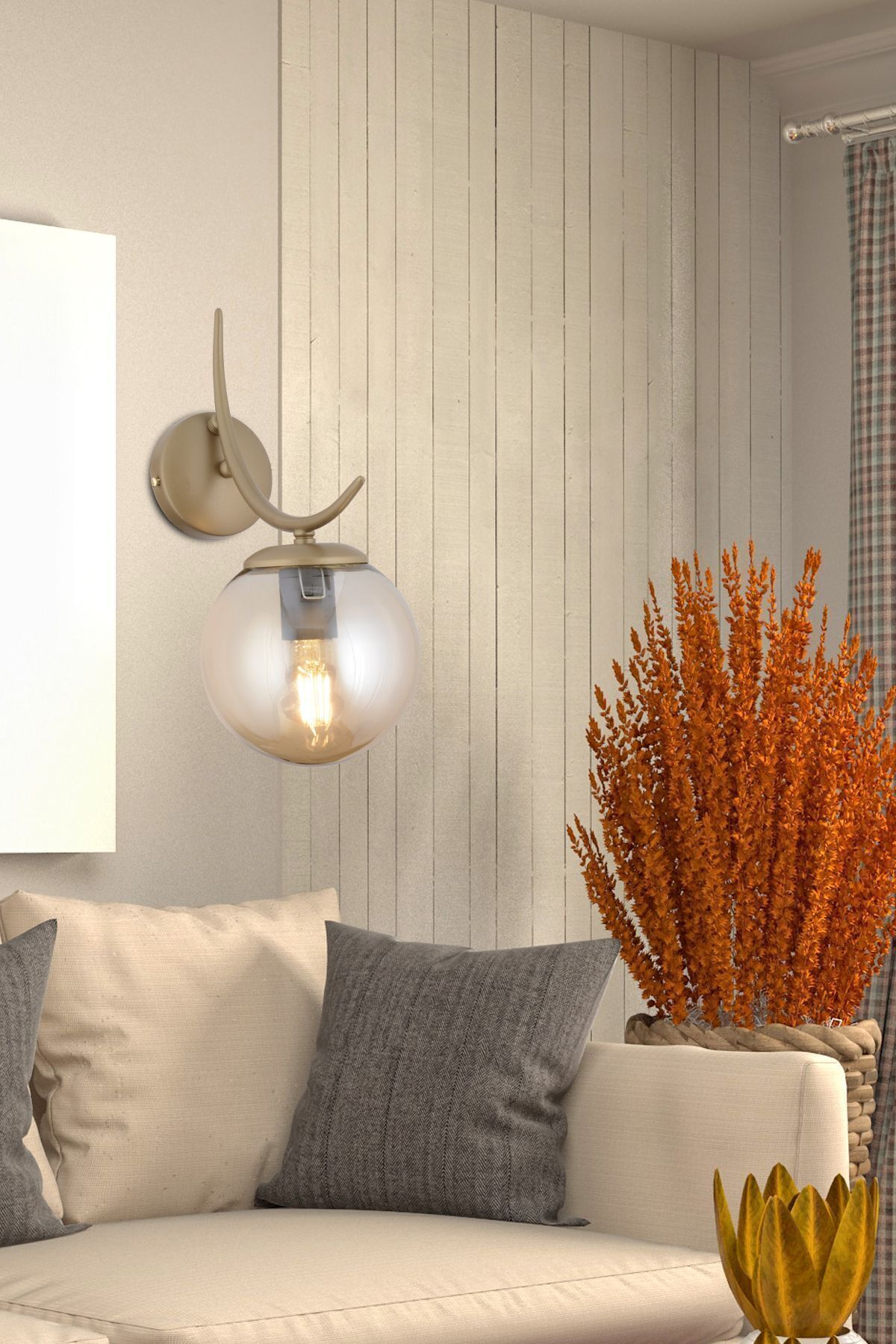 Pireal Tekli Eskitme Bal Camlı Modern Yatak Başı, Salon Aplik Pireal Tekli Eskitme Bal Camlı Modern Yatak Başı, Salon Aplik 4107-01W-FR تک سایز