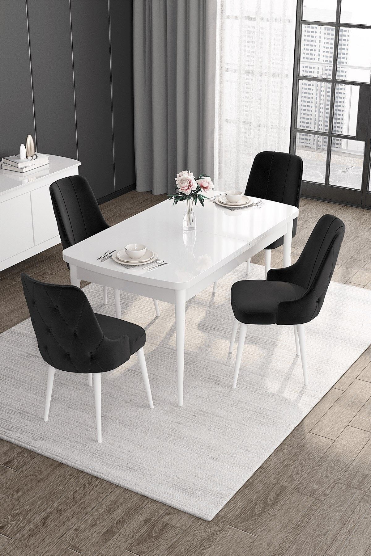 Ves Serisi 80x132 Mdf Beyaz Mutfak Masası 4 Siyah Sandalye Mutfak Masası Takımı Ves Serisi 80x132 Mdf Beyaz Mutfak Masası 4 Siyah Sandalye Mutfak Masası Takımı 23VES04BYZ04 تک سایز