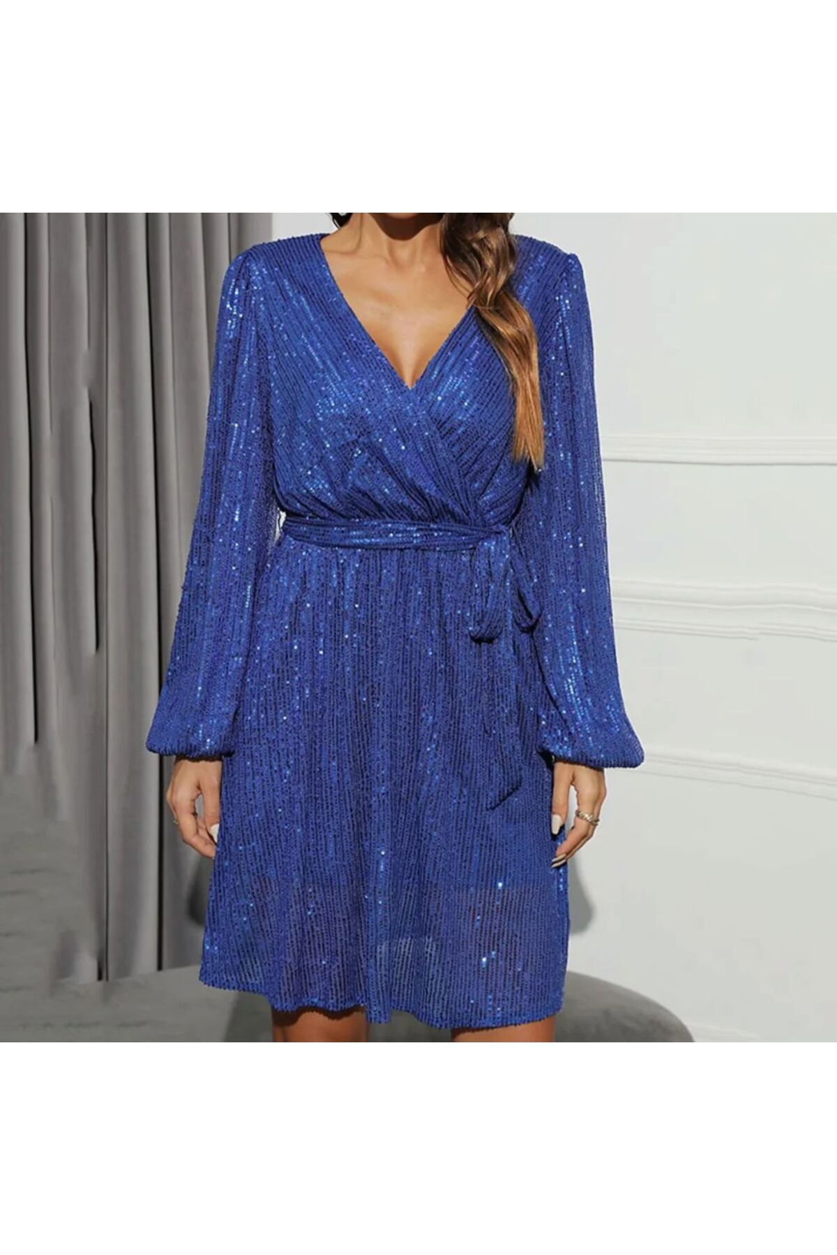 Şifon Gloplu Bel Ve Sırt Dekolteli Kat Kat Elbise Şifon Gloplu Bel Ve Sırt Dekolteli Kat Kat Elbise S-23K1040031-Saks XL