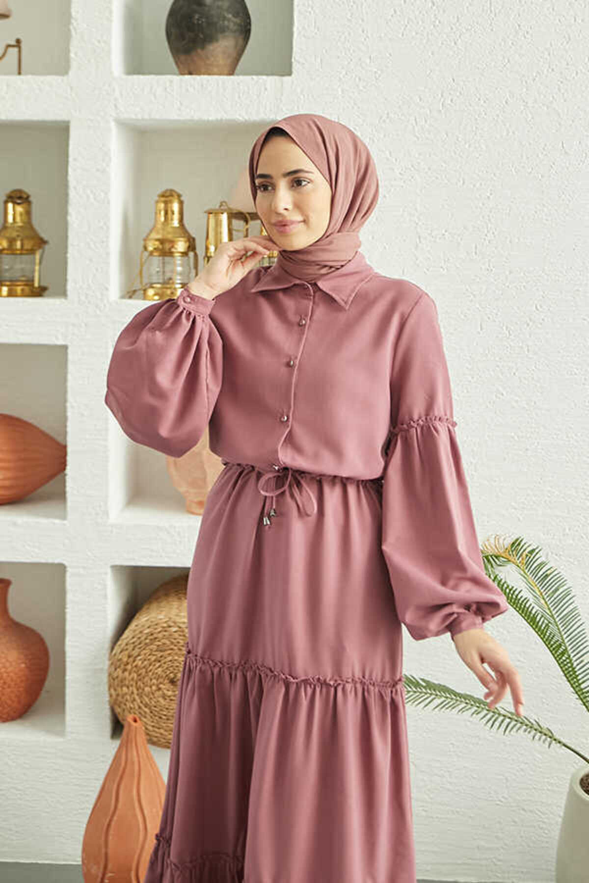 6567-carla Büzgülü Elbise Gül Kurusu 6567-carla Büzgülü Elbise Gül Kurusu bed9-1256 46