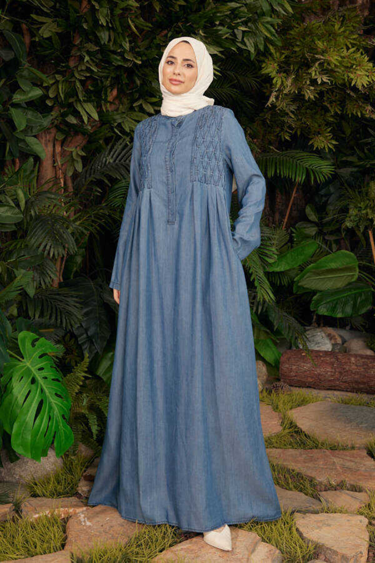 6614-denim Büzgülü Elbise Mavi 6614-denim Büzgülü Elbise Mavi bed9-1345 46
