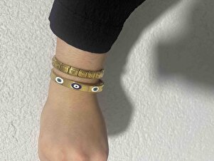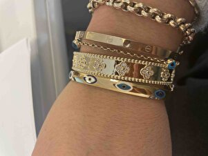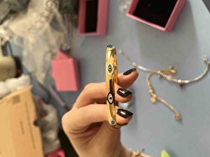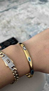 Çelik Nazar Çift Taraflı Kadın Kelepçe Kararmaz 18 Cm Bilek Uzunluğu Kadın Bileklik Çelik Nazar Çift Taraflı Kadın Kelepçe Kararmaz 18 Cm Bilek Uzunluğu Kadın Bileklik CPRKLP84 17 cm