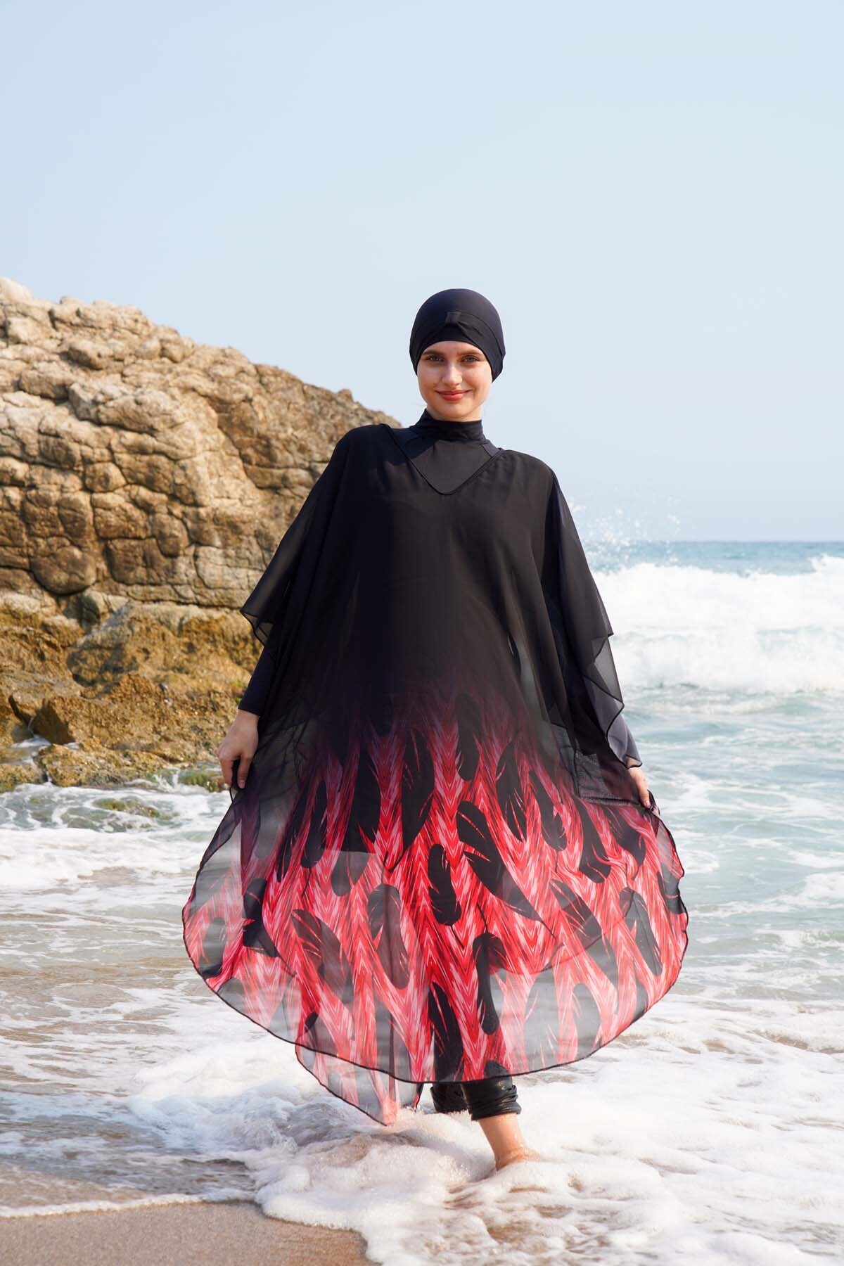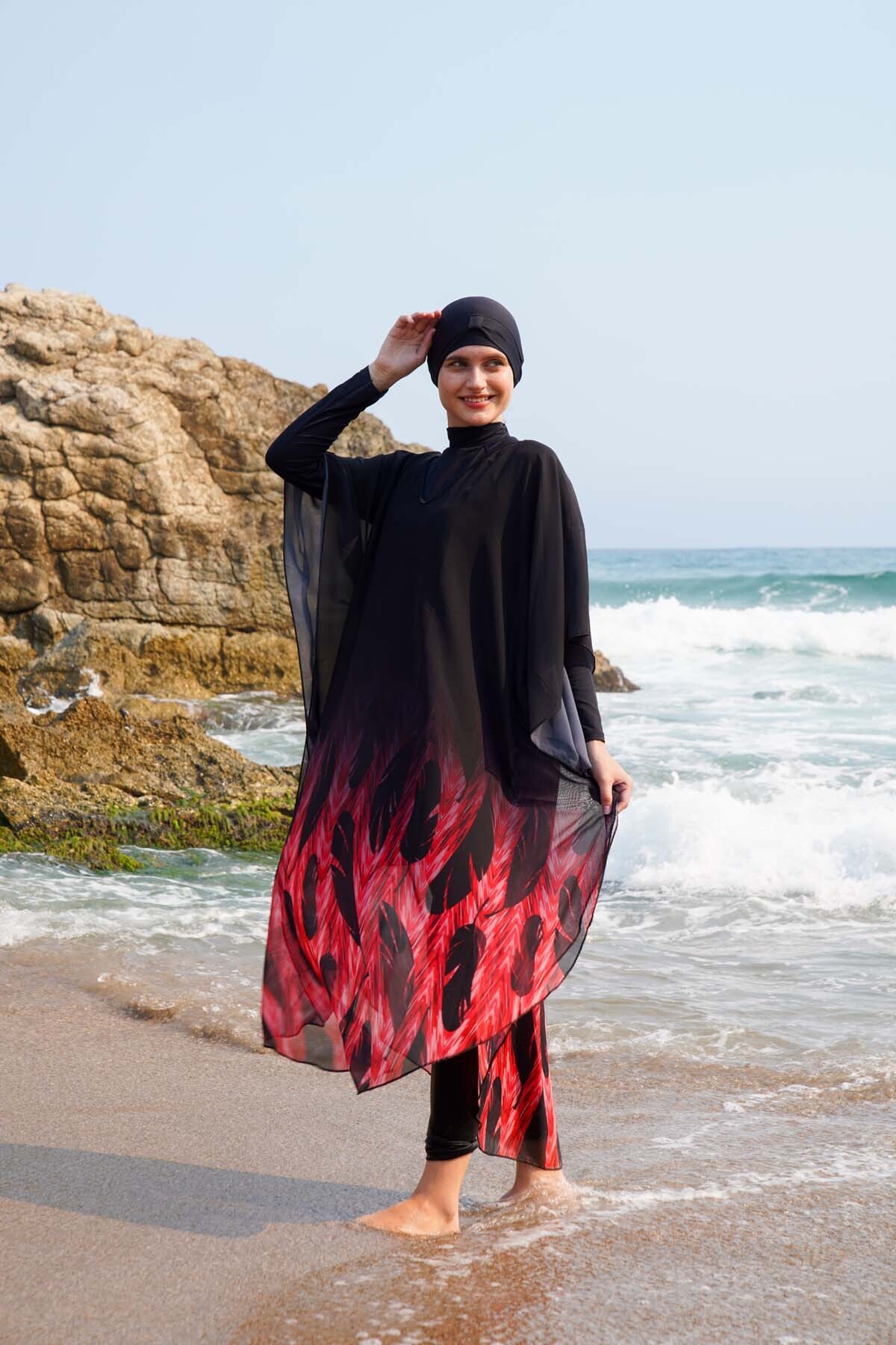 Kadın Tesettür Mayo Üzerine Kırmızı Tüy Pano Desenli Tek Pareo Kadın Tesettür Mayo Üzerine Kırmızı Tüy Pano Desenli Tek Pareo 2232 تک سایز